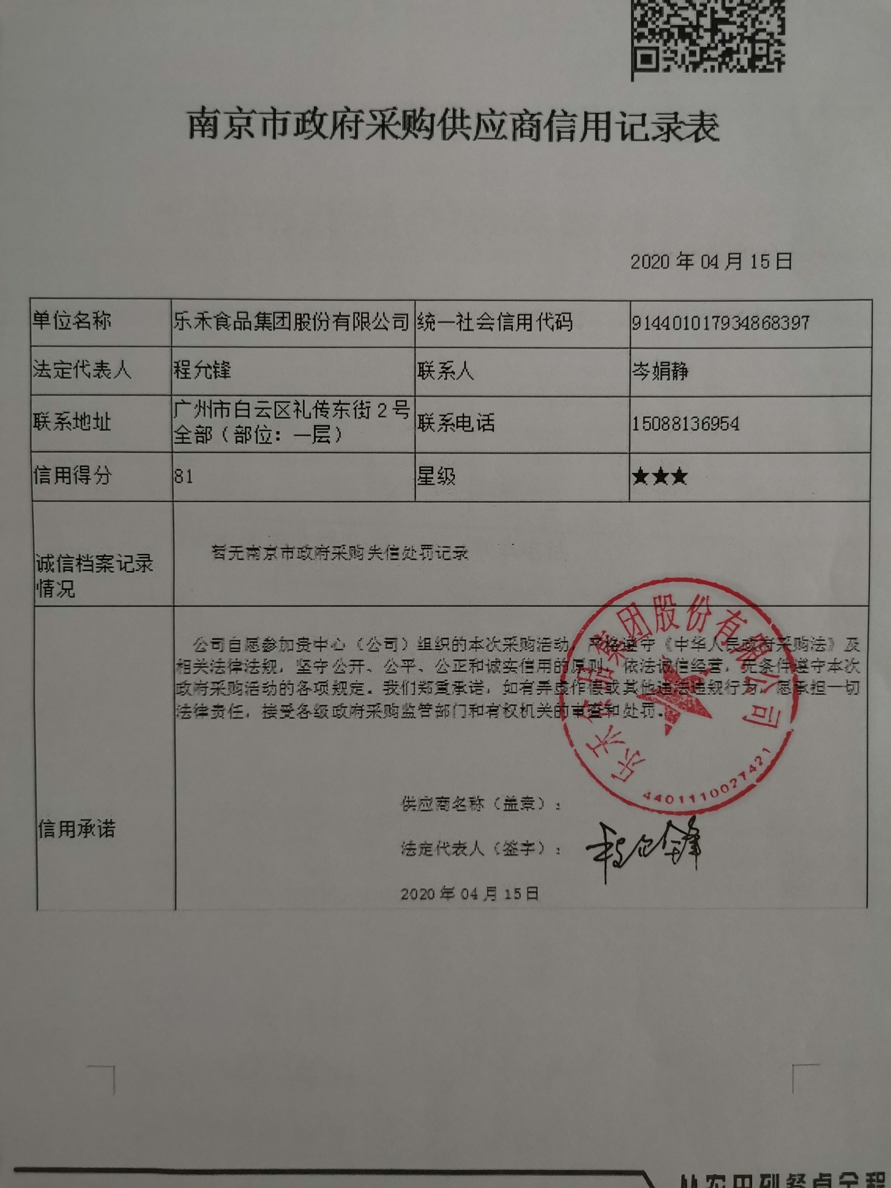 ----------------------------------招标机构发布信息原文:----------------------- 一、项目编号:CYZC-2020-150233 二、项目名称:运动员食堂大宗食材采购及配送服务 三、中标信息: 标段一、中标供应商(1)名称:乐禾食品集团股份有限公司 供应商地址:广州市白云区礼传东街2号 中标下浮率:20.3% 标段一、中标供应商(2)名称:江苏凯尔康国际贸易有限公司 供应商地址:南京市秦淮区菜市口2号 中标下浮率:26% 标段二、中标供应商(1)名称:江苏润德副食品有限公司 供应商地址:南京市玄武区进香河路6号-60 中标下浮率:33% 标段二、中标供应商(2)名称:南京苏众食品有限公司 供应商地址:南京市江宁区东山街道东麒路润恒肉类交易市场A区一楼176号 中标下浮率:23% 标段三、中标供应商(1)名称:南京东北虎东北农林特产销售有限公司 供应商地址:南京市玄武区卫岗21号19幢一楼 中标下浮率:24.5% 标段三、中标供应商(2)名称:乐禾食品集团股份有限公司 供应商地址:广州市白云区礼传东街2号 中标下浮率:20.1% 标段四、中标供应商(1)名称:南京品旺商贸有限公司 供应商地址:南京市江宁区东山街道东麒路66号润恒肉类交易市场B区2栋1层105号 中标下浮率:38% 标段四、中标供应商(2)名称:南京苏众食品有限公司 供应商地址:南京市江宁区东山街道东麒路润恒肉类交易市场A区一楼176号 中标下浮率:24% 标段五、中标供应商(1)名称:南京荷高食品贸易有限公司 供应商地址:南京江宁区上元大街88号金王府商业街 中标下浮率:30% 标段五、中标供应商(2)名称:南京企康食品有限公司 供应商地址:南京市栖霞区迈皋桥街道和燕路349号10号楼A座 中标下浮率:28.8% 四、主要标的信息 标段一、米面类 名称:大米 品牌1:盘锦大米 品牌2:鹤鸣谷 规格型号:符合GB/T1354-2009 数量:按实际所需提供 单价:按市场平均价下浮 标段二、肉类 名称:肉类 品牌1:双汇 品牌2:雨润 规格型号:符合GB2707-2016 数量:按实际所需提供 单价:按市场平均价下浮 标段三、油类 名称:食用油 品牌1:醇U工坊 品牌2:金龙鱼 规格型号:符合GB1535-2003 数量:按实际所需提供 单价:按市场平均价下浮 标段四、冷冻类 名称:冷冻类 品牌:太合 规格型号:\ 数量:按实际所需提供 单价:按市场平均价下浮 标段五、奶制类 名称:酸奶、牛奶 品牌1:卫岗 品牌2:光明 规格型号:\ 数量:按实际所需提供 单价:按市场平均价下浮 五、评审专家名单:李明华 唐迎庆 章庆 韩庆 傅强(采购人代表) 六、代理服务收费标准及金额:每家入围单位须分别向招标代理机构支付壹万伍仟元的招标代理服务费。 七、公告期限 自本公告发布之日起1个工作日。 八、其他补充事宜 无 九、凡对本次公告内容提出询问,请按以下方式联系。 1.采购人信息名 ???称:龚先生 联系电话:13851769657 地 ???址:南京市江北新区城南河路99号 2.采购代理机构信息名 ???称:刘工 地 ?址:025-58956153 联系方式:南京市鼓楼区水佑岗6号4楼 3.项目联系方式项目联系人:龚先生 电 ???话:13851769657 十、附件 1.各参加本次政府采购活动的供应商认为该中标结果和采购过程等使自己的权益受到损害的,可以自本公告期限届满之日(自本公告发布之日起至第2个工作日止)起7个工作日内以书面形式向采购代理机构(地 址:南京市鼓楼区水佑岗路6号403室,联系电话:025-58956158)提出质疑,逾期将不再受理。 2.本次采购所涉及政策为:《政府采购促进中小企业发展暂行办法》(财库〔2011〕181号)、《南京市政府采购供应商信用管理工作暂行办法》宁财规[2018]10号。 ? ? 附件:信用记录表 (7).jpg 信用记录表 (8).jpg 信用记录表 (6).jpg 信用记录表 (5).jpg 信用记录表 (4).jpg 信用记录表 (3).jpg 信用记录表 (2).jpg 信用记录表 (1).jpg CYZC-2020-150233运动员食堂大宗食材采购及配送服务.pdf 十、十环招标网信息 原标题:运动员食堂大宗食材采购及配送服务中标结果公告 十环招标网标题:江苏驰驿招标代理有限公司发布运动员食堂大宗食材采购及配送服务中标结果公告 十环招标网标号:10h1587541386 信息来源:江苏驰驿招标代理有限公司 官方发布时间:4月22日 十环招标网转发时间:2020-04-22 15:43:06 十一、其他事项: 《招标投标法》 第三十七条 一般招标项目可以采取随机抽取方式,特殊招标项目可以由招标人直接确定。 《招标投标法》 第一条 为了规范招标投标活动,保护国家利益、社会公共利益和招标投标活动当事人的合法权益,提高经济效益,保证项目质量,制定本法。 来源:江苏政府采购网 ------------------------------------招标信息结束---------------------------- 标签: 中标 采购 大宗 运动员 食堂 上一篇: 麻城市2020年农村道路危桥改造第四批由湖北五岳招标代理有限公司发布中标信息 最新5000条招标信息列表: 滚动招标 |