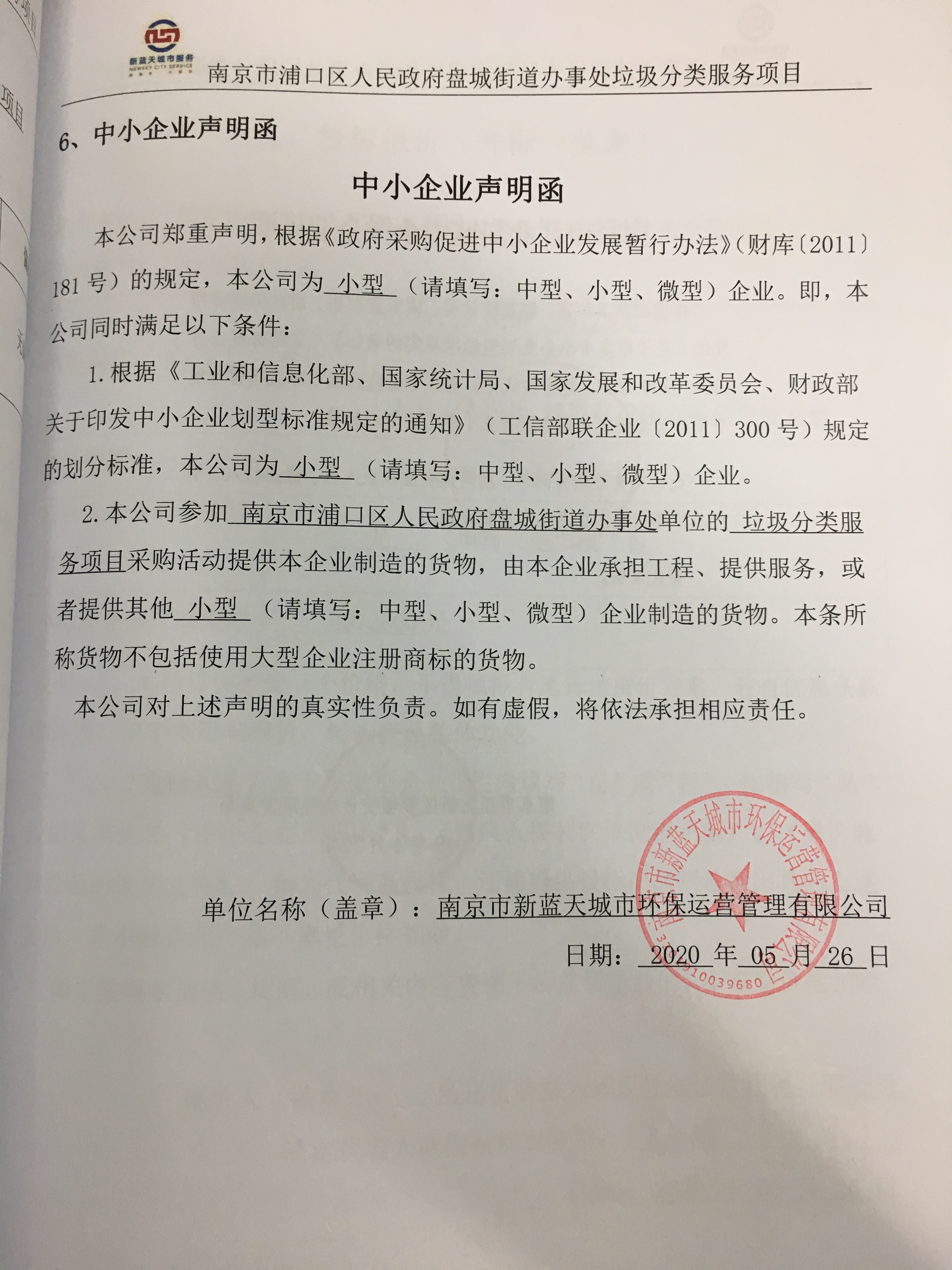 ----------------------------------招标机构发布信息原文:----------------------- 一、项目编号:066020861292 二、项目名称:南京市浦口区盘城街道办事处环卫保洁服务项目 三、中标信息 中标供应商:南京市新蓝天城市环保运营管理有限公司 中标供应商地址:南京市浦口区盘城街道永丰村永丰街47号 中标金额:人民币654.55?万元 四、主要标的信息 名称:环卫保洁服务 服务范围:盘城街道道路保洁281458.6㎡、生活垃圾清运、绿地保洁153498.97㎡、牛皮癣清理 、9座公厕吸污环境整治服务 服务要求:详见招标文件 服务时间:3年 服务标准:详见招标文件 五、评审专家(单一来源采购人员)名单:张瑞芬、陈玉香、王蓬、朱红兵、徐士斌 六、代理服务收费标准及金额:收费标准:本次招标,中标人按3年的总报价计算,成交供应商参照《招标代理服务费管理暂行办法》(国家发展计划委员会计价格【2002】1980号)代理招标收费基准费率计算,向招标代理机构支付招标服务费9.3591?万元。 七、公告期限 自本公告发布之日起1个工作日。 八、其他补充事宜 ? 九、凡对本次公告内容提出询问,请按以下方式联系。 1.采购人信息名 ???称:南京市浦口区盘城街道办事处 联系人:周工 联系电话:02558731680 2.采购代理机构信息名 ???称:江苏省设备成套有限公司 地 ?址:南京市山西路120号江苏成套大厦1604室 联系方式:瞿凯 ?025-86630962 3.项目联系方式项目联系人:瞿凯 电 ?话:025-86630962 十、附件 1、招标文件 2、中小企业声明函 附件:盘城保洁招标文件14.24.pdf IMG_1064.jpg 十、十环招标网信息 原标题:南京市浦口区人民政府盘城街道办事处环卫保洁服务项目中标结果公告 十环招标网标题:南京市浦口区人民政府盘城街道办事处环卫保洁服务项目中标结果公告江苏成交 十环招标网标号:10h1590547087 信息来源:江苏省设备成套有限公司 官方发布时间:5月27日 十环招标网转发时间:2020-05-27 10:38:07 十一、其他事项: 《招标投标法》 第十二条 依法必须进行招标的项目,招标人自行办理招标事宜的,应当向有关行政监督部门备案。 《招标投标法》 第四十四条 评标委员会成员应当客观、公正地履行职务,遵守职业道德,对所提出的评审意见承担个人责任。 来源:江苏政府采购网 ------------------------------------招标信息结束---------------------------- 标签: 中标 浦口 南京市 环卫 街道办事处 上一篇: 第六届石家庄市旅发大会文创产品设计制作成交公告河北成交 最新5000条招标信息列表: 滚动招标 |