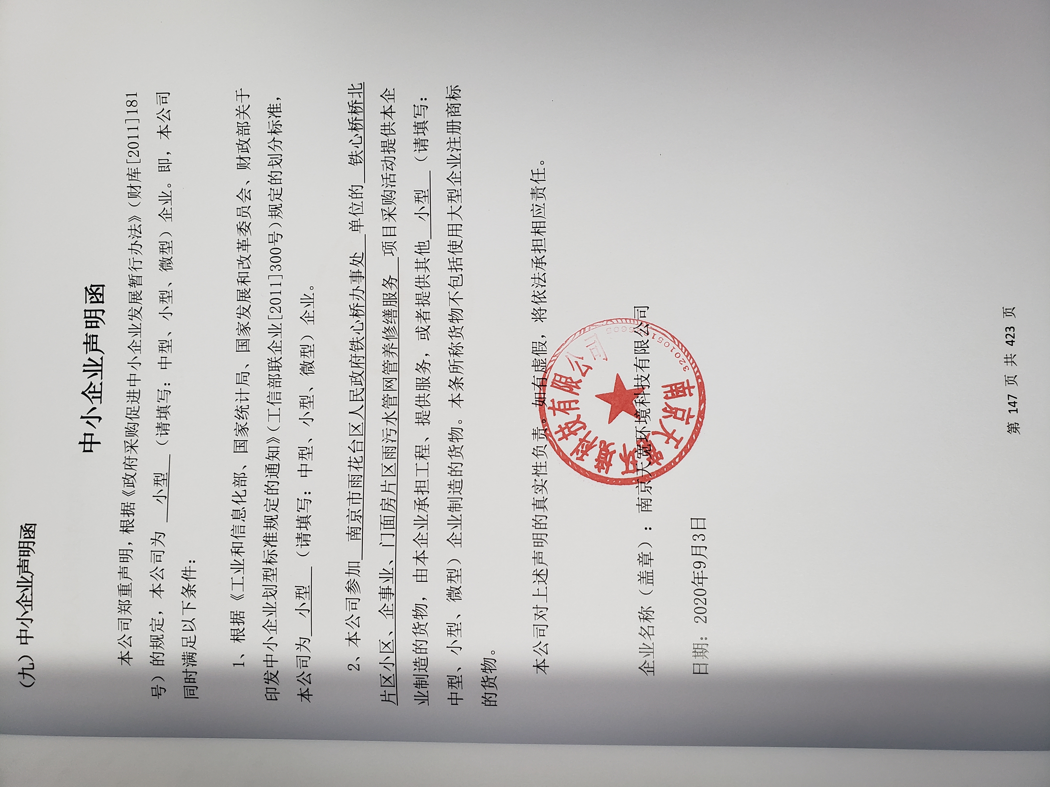 ----------------------------------招标机构发布信息原文:----------------------- 一、项目编号:JSJX-2020055 二、项目名称:铁心桥桥北片区小区、企事业、门面房片区雨污水管网 管养修缮服务 三、中标信息 供应商名称:南京天宽环境科技有限公司 供应商地址:南京市雨花台区凤集大道15号71幢B15栋北楼202-1室 中标(成交)金额:690.7998万元 四、主要标的信息 采购需求:铁心桥桥北片区小区、企事业、门面房片区雨污水管网管养修缮服务 合同履行期限:养护期一年 五、评审专家名单:吴晓晶、吴存泓、车璐、苏鹦、徐四美、唐玉美、白万钟(采购人代表) 六、代理服务收费标准及金额: 招标代理费按计价格[2002]1980号执行,金额:5.56万元。 七、公告期限 自本公告发布之日起1个工作日。 八、其他补充事宜 无 九、凡对本次公告内容提出询问,请按以下方式联系。 1.采购人信息 名??? 称:南京市雨花台区人民政府铁心桥办事处 地??? 址:南京市雨花台区大周路59号 联系方式:/ 2.采购代理机构信息 名? ?称:江苏捷星建设项目投资管理有限公司 地? ?址:南京市凤宁路1号 联系方式 :84493363 3.项目联系方式 项目联系人:王工 电 ? 话 :13770559224 十、附件 1.采购文件 2.《中小企业声明函》 附件:北 中小企业申明.jpg 铁心桥桥北养护 招标文件定稿.pdf 十、十环招标网信息 原标题:铁心桥桥北片区小区、企事业、门面房片区雨污水管网管养修缮服务中标结果公告 十环招标网标题:铁心桥桥北片区小区、企事业、门面房片区雨污水管网管养修缮服务中标结果公告江苏成交 十环招标网标号:10h1599455270 信息来源:江苏捷星建设项目投资管理有限公司 官方发布时间:9月7日 十环招标网转发时间:2020-09-07 13:07:50 十一、其他事项: 《招标投标法》 第五十六条对有所列违法行为的评标委员会成员取消担任评标委员会成员的资格,不得再参加任何依法必须进行招标的项目的评标;构成犯罪的,依法追究刑事责任。 《招标投标法》 第二十六条 投标人应当具备承担招标项目的能力;国家有关规定对投标人资格条件或者招标文件对投标人资格条件有规定的,投标人应当具备规定的资格条件。 来源:江苏政府采购网 ------------------------------------招标信息结束---------------------------- 标签: 中标 片区 铁心 污水 网管 上一篇: 中国烟草总公司福建省公司省局全省广域网络链路租用服务采购项目中标候选人公告福建成交 最新5000条招标信息列表: 滚动招标 |