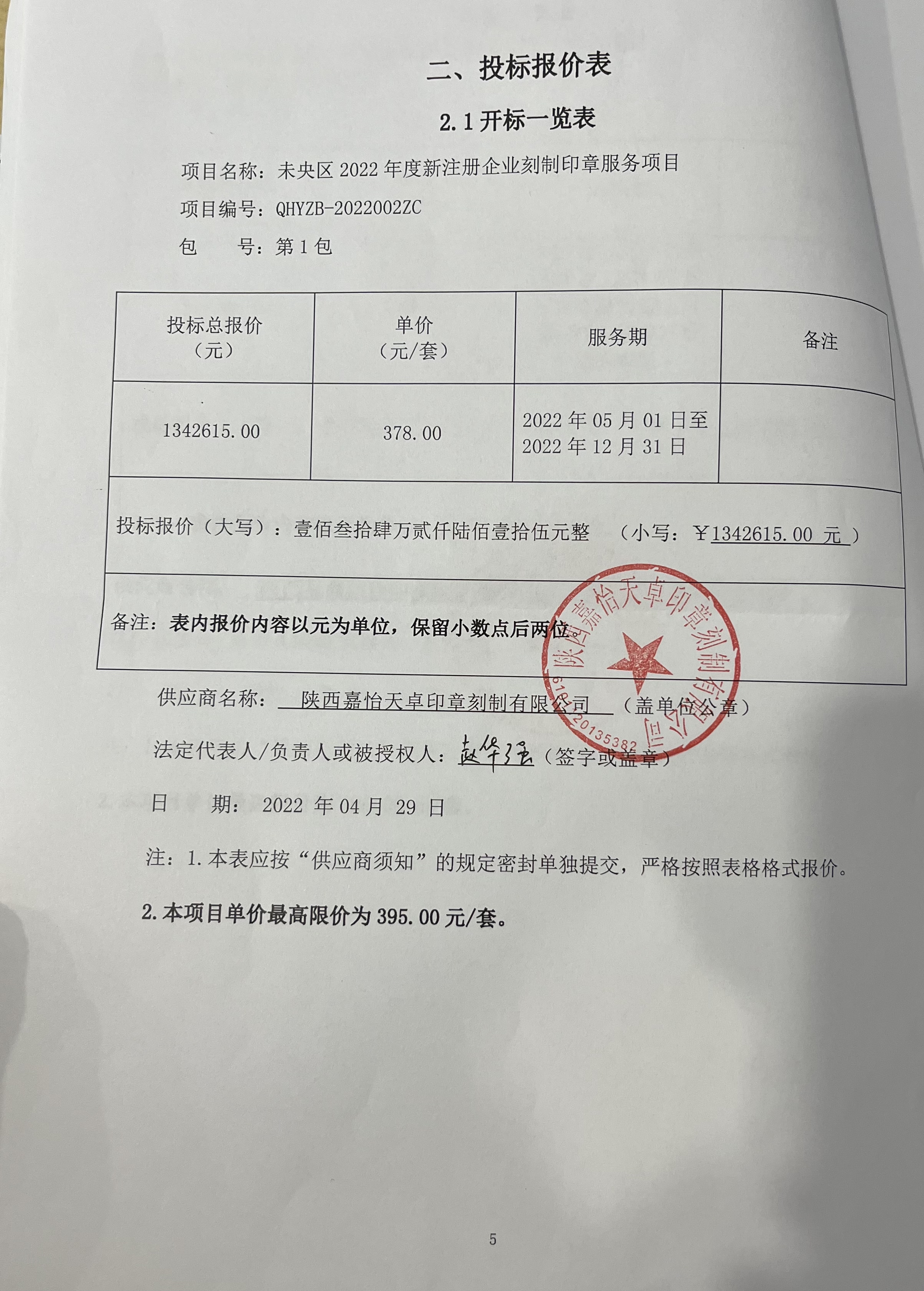 合同包2(未央区2022年度新注册企业刻制印章服务项目): 服务类(陕西嘉怡天卓印章刻制有限公司)