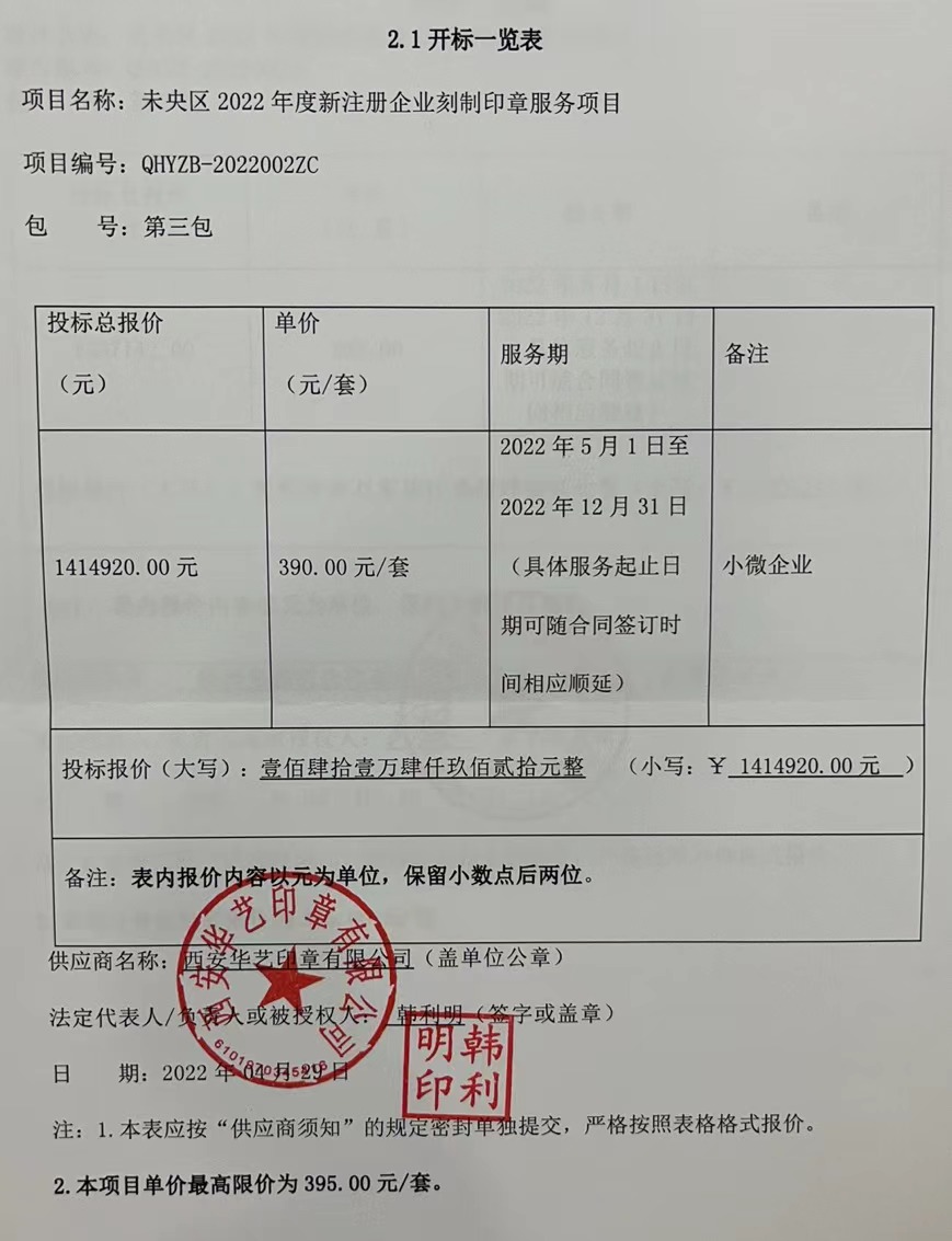 未央区2022年度新注册企业刻制印章服务项目中标(成交)结果公告 |