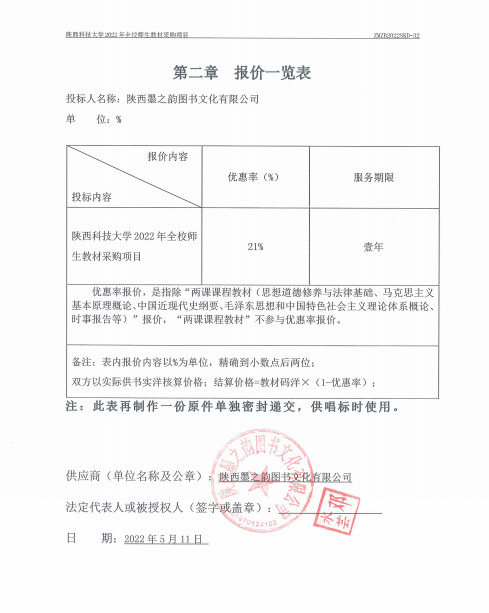 陕西科技大学2022年全校师生教材采购项目中标结果公告 |