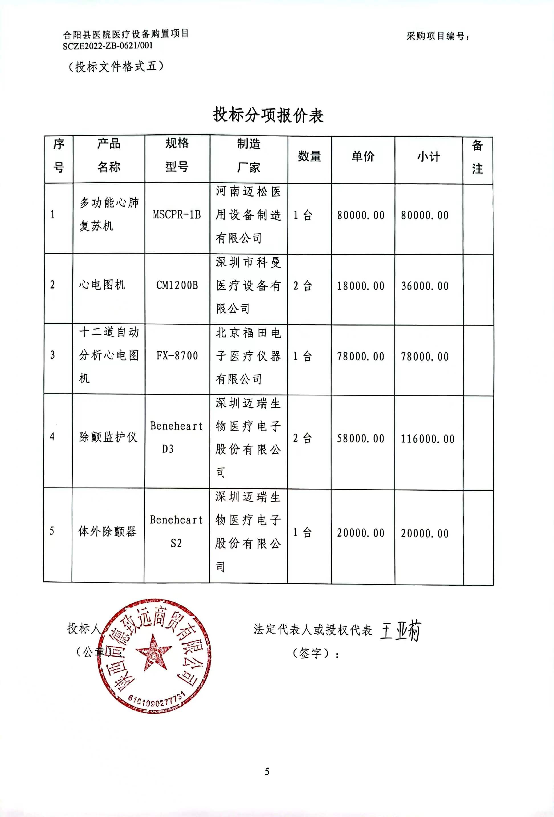 自本公告发布之日起1个工作日。 八、其他补充事宜/ 九、凡对本次公告内容提出询问,请按以下方式联系。 1.采购人信息名称:合阳县医院 地址:合阳县黄河路80号 联系方式:0913-5518376 2.采购代理机构信息名称:陕西省采购招标有限责任公司 地址:西安市高新二路2号山西证券大厦8层 联系方式:029-88490543 3.项目联系方式项目联系人:张怡 马超 电话:029-88490543 陕西省采购招标有限责任公司 2022年05月13日 相关附件: 合阳县医院医疗设备购置项目中标(成交)明细.pdf 一标段分项报价表.jpg 合阳县医院医疗设备购置项目招标文件.doc 十一、其他事项: ------------------------------------招标信息结束---------------------------- 标签: 项目 中标 医院 合阳县 医疗设备 公告 上一篇: 多伦县民族事务委员会多伦县西干沟乡羊盘沟村发展壮大村集体经济基础设施建设项目结果公告 最新5000条招标信息列表: 滚动招标 |