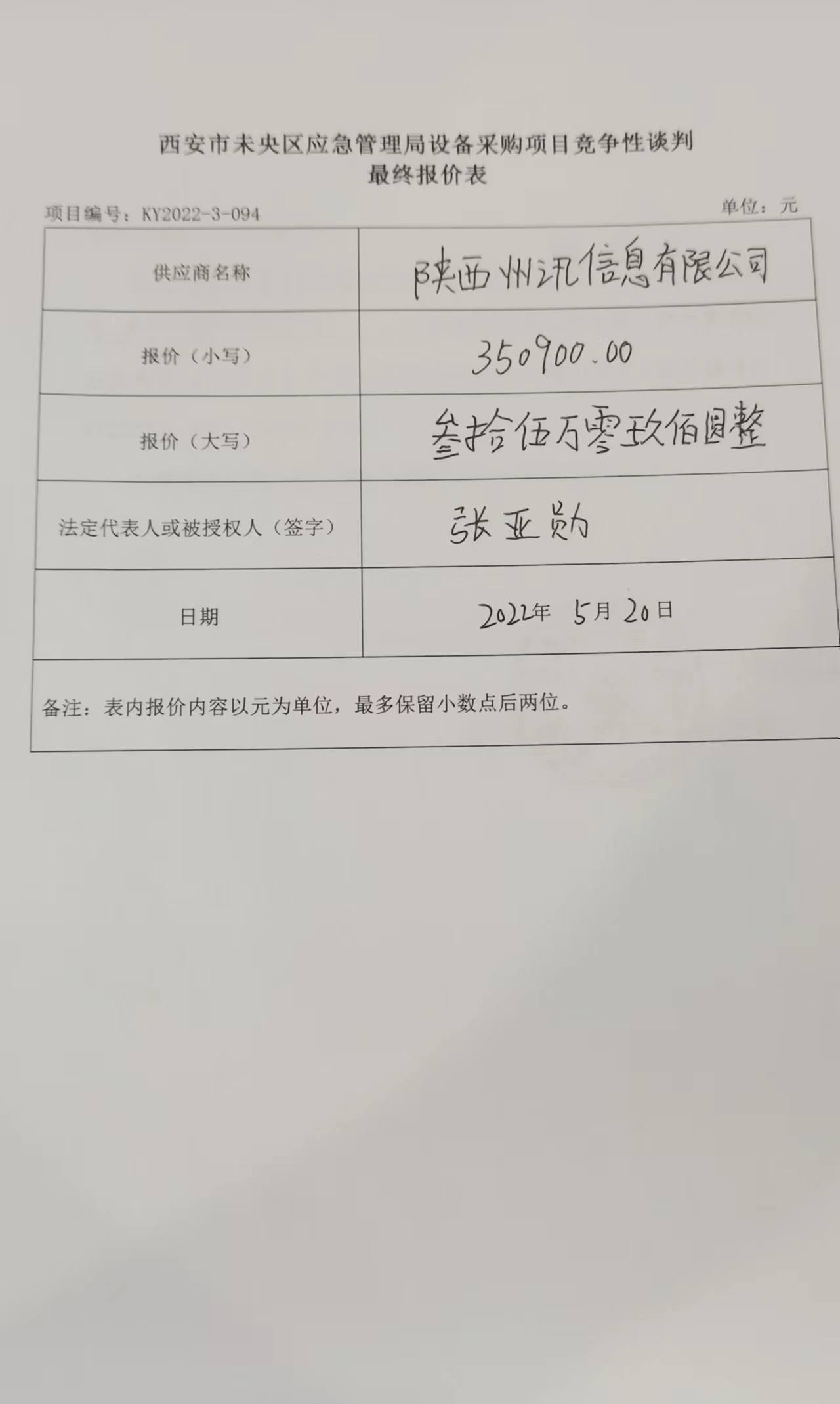合同包1(西安市未央区应急管理局设备采购项目): 货物类(陕西州讯信息科技有限公司)