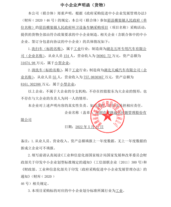 合同包1(环卫设备车辆): 货物类(深圳市普路通供应链管理股份有限公司)