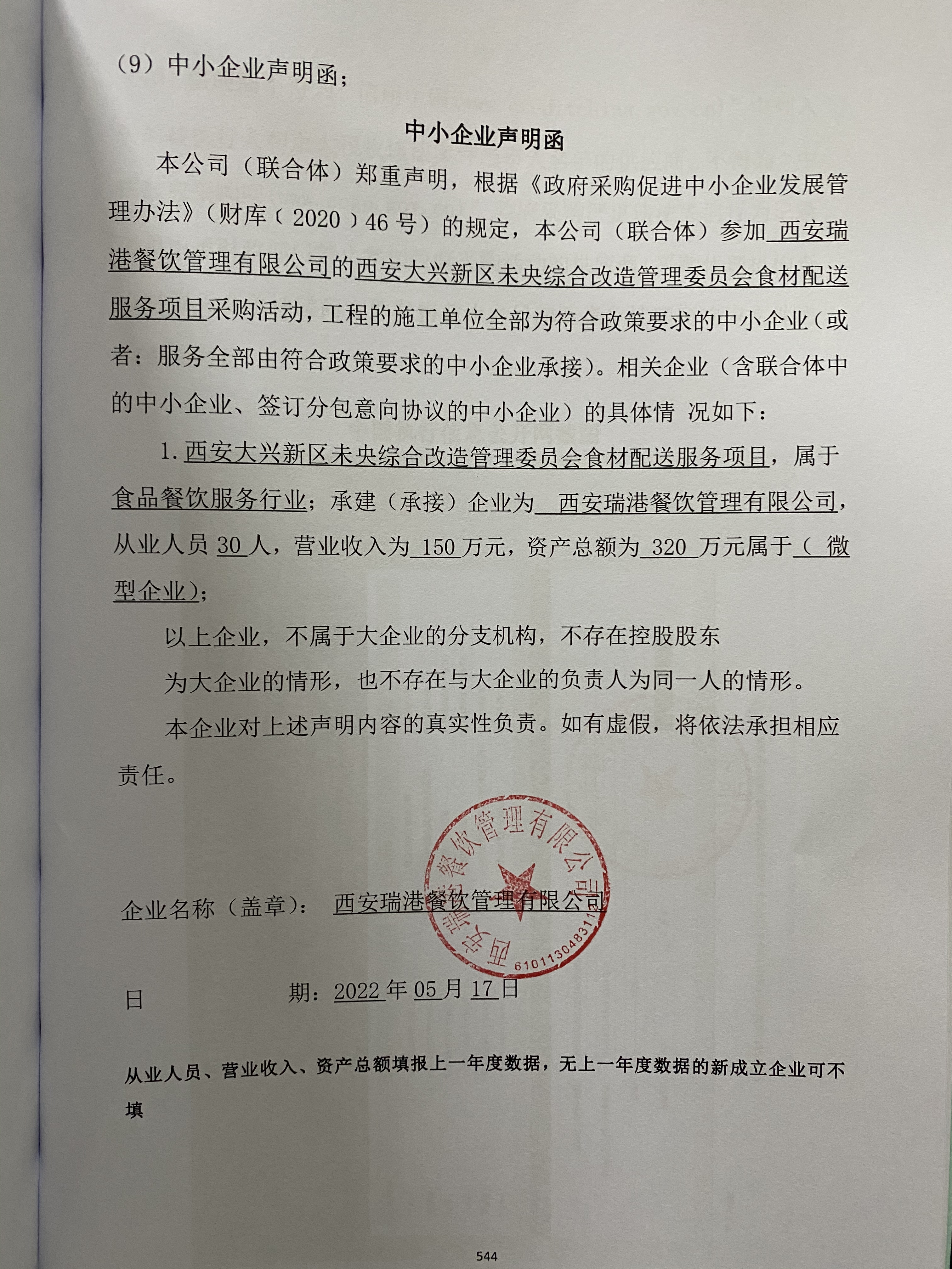 合同包1(西安大兴新区未央综合改造管理委员会食材配送服务项目): 服务类(西安瑞港餐饮管理有限公司)