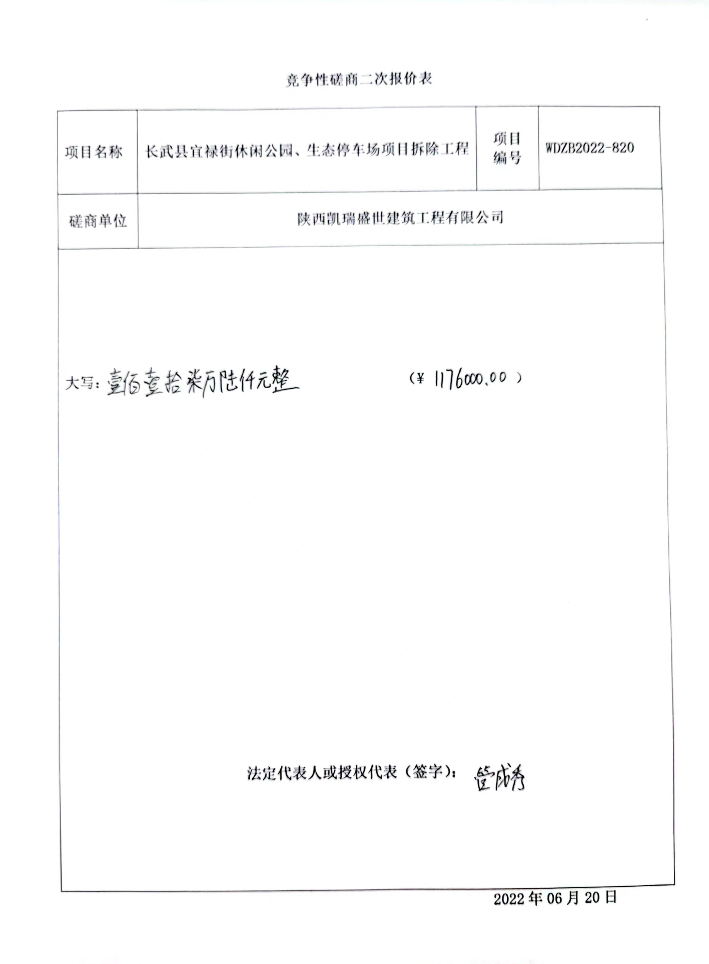 合同包1(长武县宜禄街休闲公园、生态停车场项目拆除工程): 工程类(陕西凯瑞盛世建筑工程有限公司)