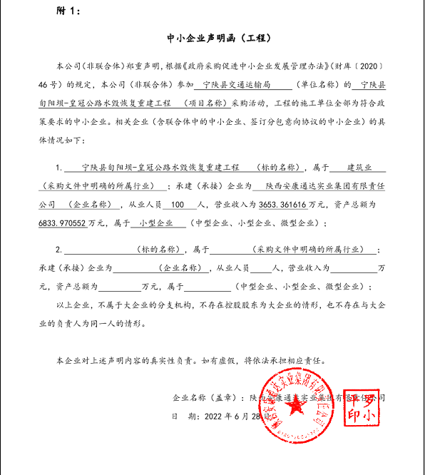 2022年6月29日宁陕县旬阳坝-皇冠公路水毁恢复重建工程 成交结果公告 |
