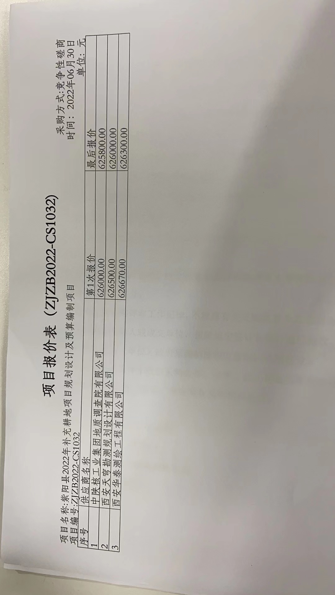 2022年7月1日紫阳县自然资源局紫阳县2022年补充耕地项目规划设计及预算编制项目中标(成交)结果公告 |