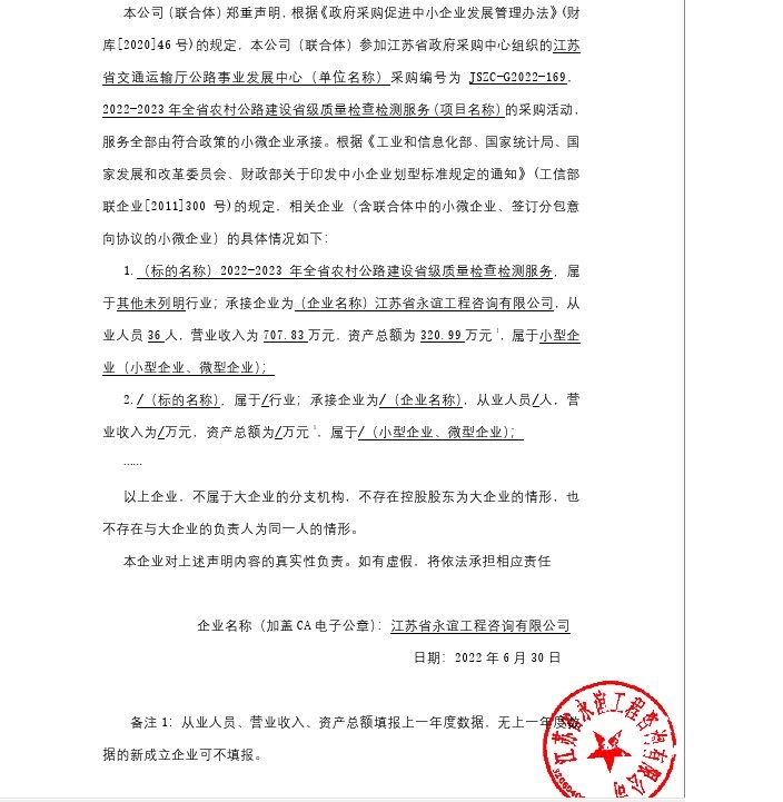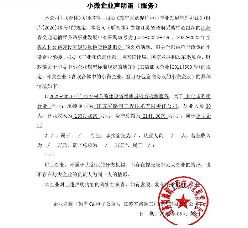 2022年7月4日江苏省交通运输厅公路事业发展中心2022-2023年全省农村公路建设省级质量检查检测服务公开招标中标公告JSZC-G2022-169 |