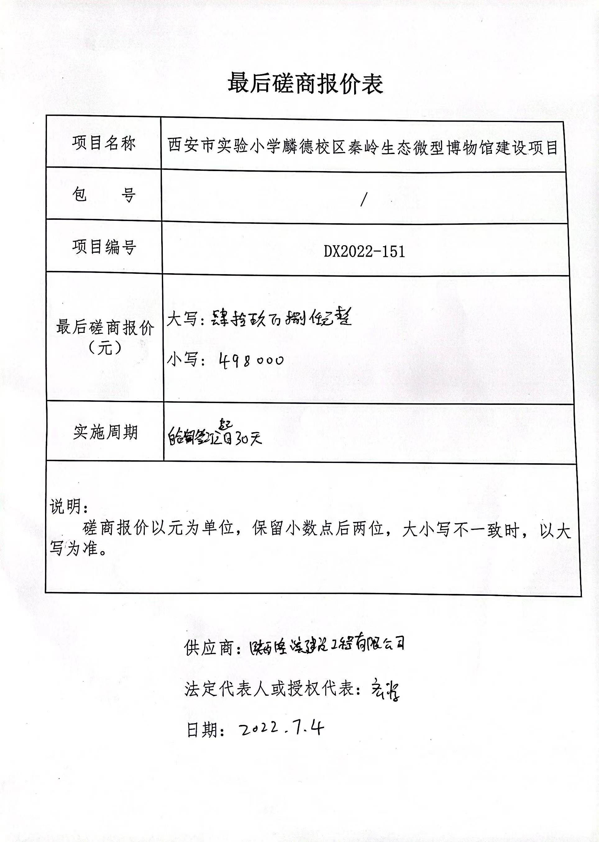 ----------------------------------招标机构发布信息原文:----------------------- <meta http-equiv="content-type" content="text/html;charset=utf-8"> 一、项目编号:DX2022-151 二、项目名称:秦岭生态微型博物馆建设项目 三、采购结果 合同包1(西安市实验小学麟德校区秦岭生态微型博物馆建设项目):
