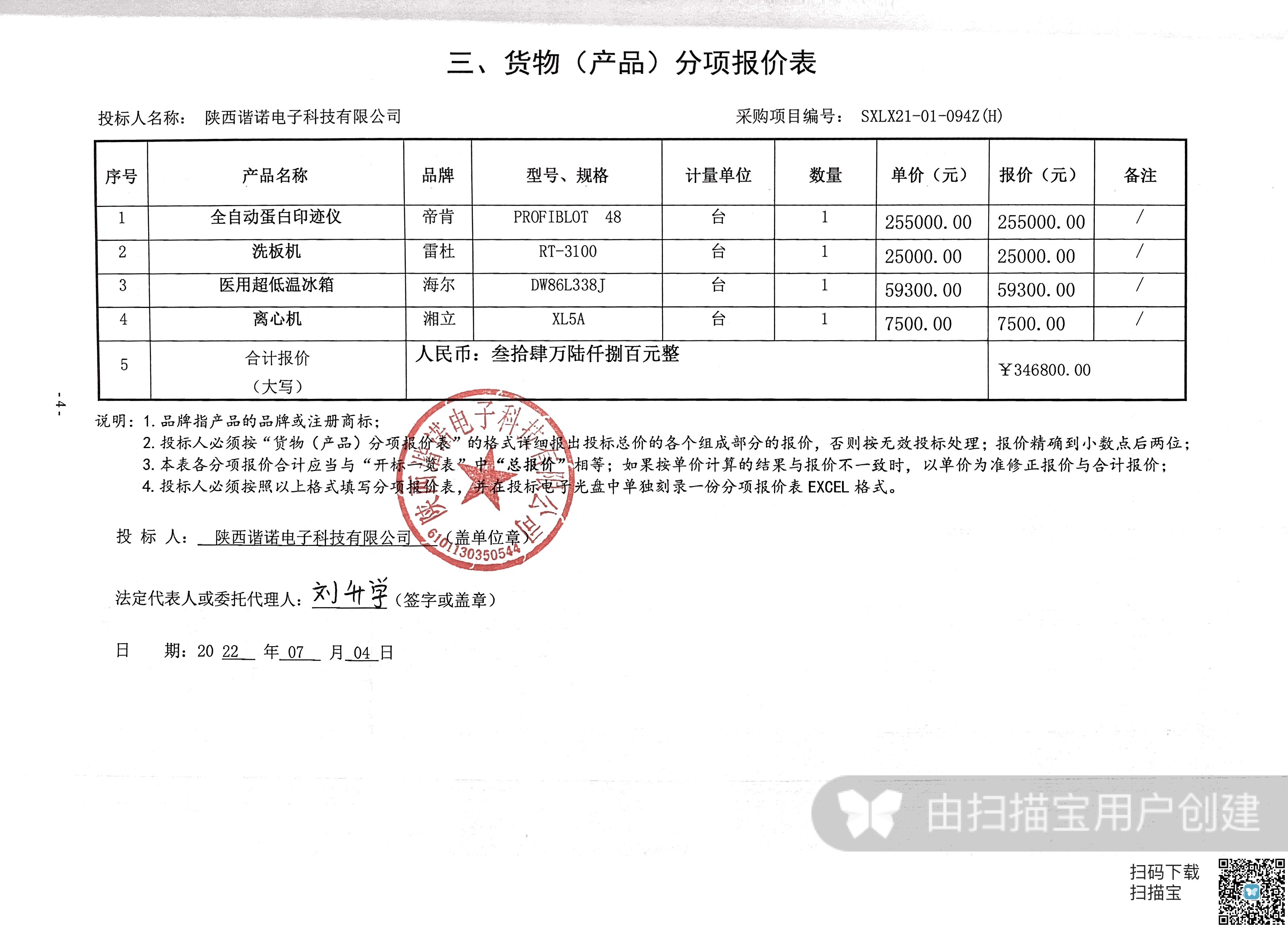 合同包1(西安市雁塔区疾病预防控制中心艾滋病确证实验室建设项目): 货物类(陕西谐诺电子科技有限公司)