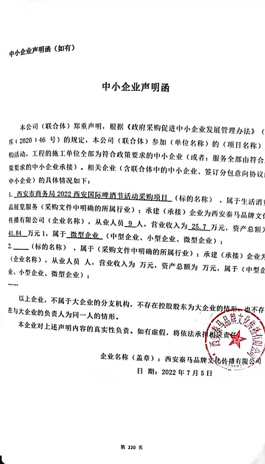 合同包1(西安市商务局2022西安国际啤酒节活动采购项目): 服务类(西安秦马品牌文化传播有限公司)