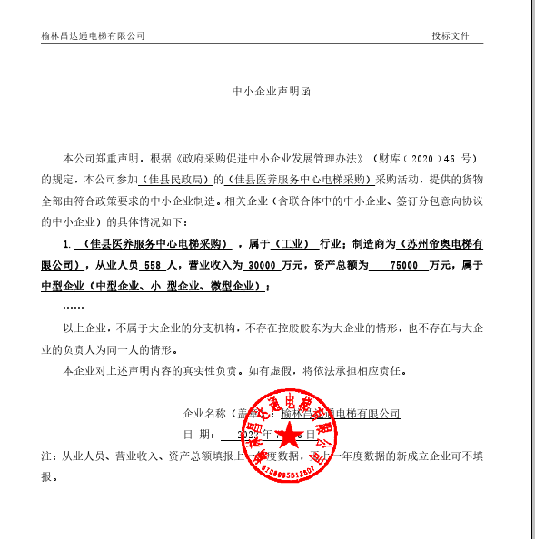 合同包1(佳县医养服务中心电梯采购): 货物类(榆林昌达通电梯有限公司)