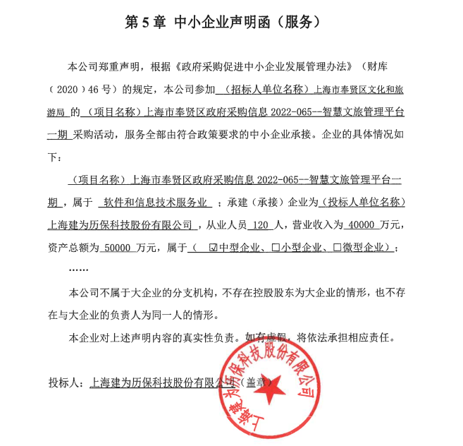 五、评审专家(单一来源采购人员)名单: 丁聪,金军,王明义,杨勇,李渊印 六、代理服务收费标准及金额: 1.代理服务收费标准: 2.代理服务收费金额(元):/ 七、公告期限 自本公告发布之日起1个工作日。 八、其他补充事宜 经评审,9家投标单位均基本满足招标要求。上海建为历保实力较强,业绩经验较为丰富,其中智慧文旅项目案例数量多、贴合度高。团队配置整体较强,人员数量多、专业配置合理、高级/中级占比高、业务经验丰富人员较多。需求方案设计、总体设计方案、模块设计方案等较为完整,内容详实,具有较强的针对性,与招标需求贴合度较高。售后服务承诺有针对性,具备一定的可行性。所投产品软硬件性能和指标参数等较为满足招标要求。电信上海分公司、联通上海市分公司、上海中移、东方数据实力较强,业绩经验较为丰富。团队配置整体较强,方案等较为完整,售后服务承诺有针对性,具备一定的可行性。所投产品软硬件性能和指标参数等较为满足招标要求。上海致千、奉贤东方有线、上海荟宸、上海云赜实力一般,业绩经验一般,其中智慧文旅项目案例数量较少、贴合度较低。方案等基本满足招标需求,较为粗略,内容完整性一般。售后服务承诺内容较为一般。所投产品软硬件性能和指标参数等基本满足招标要求。 九、凡对本次公告内容提出询问,请按以下方式联系 1.采购人信息 名 称:上海市奉贤区文化和旅游局 地 址:奉贤区环城东路383号 联系方式:021-57191927 2.采购代理机构信息 名 称:上海市奉贤区政府采购中心 地 址:上海市奉贤区望园南路1529弄1-3号奉贤区行政服务中心C幢3楼 联系方式:37563185 3.项目联系方式 项目联系人:马人杰 电 话:37563185
