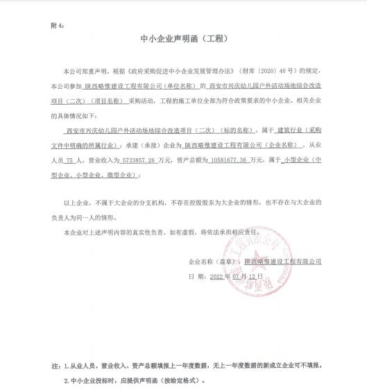 合同包1(西安市兴庆幼儿园户外活动场地综合改造项目(二次)): 工程类(陕西略惟建设工程有限公司)