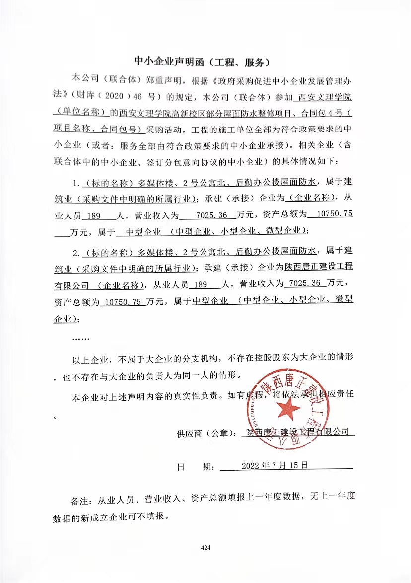 合同包4(多媒体楼、2号公寓北、后勤办公楼屋面防水): 工程类(陕西唐正建设工程有限公司)