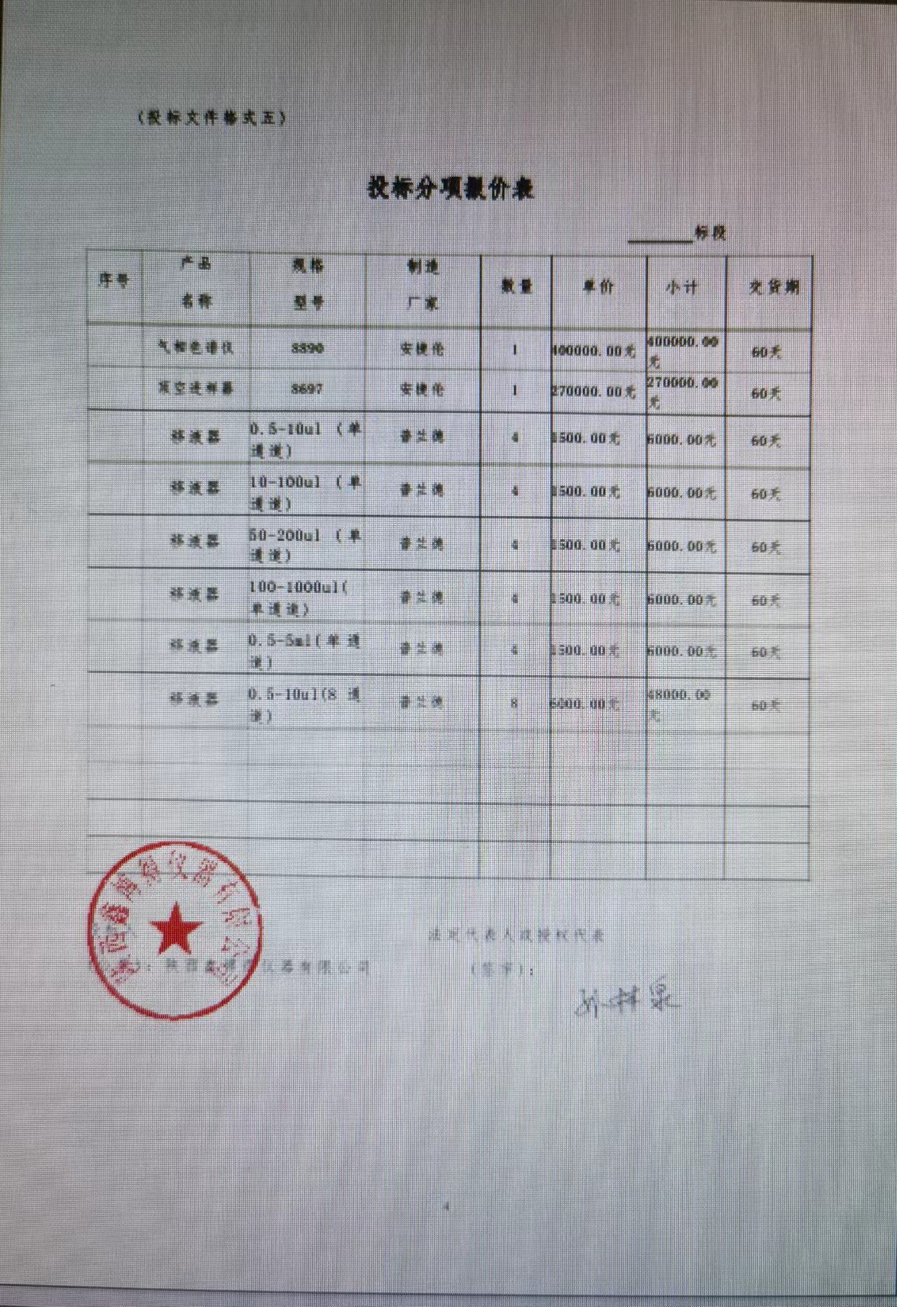 合同包1(实验室气相色谱仪及移液器设备采购项目): 货物类(陕西鑫博得仪器有限公司)