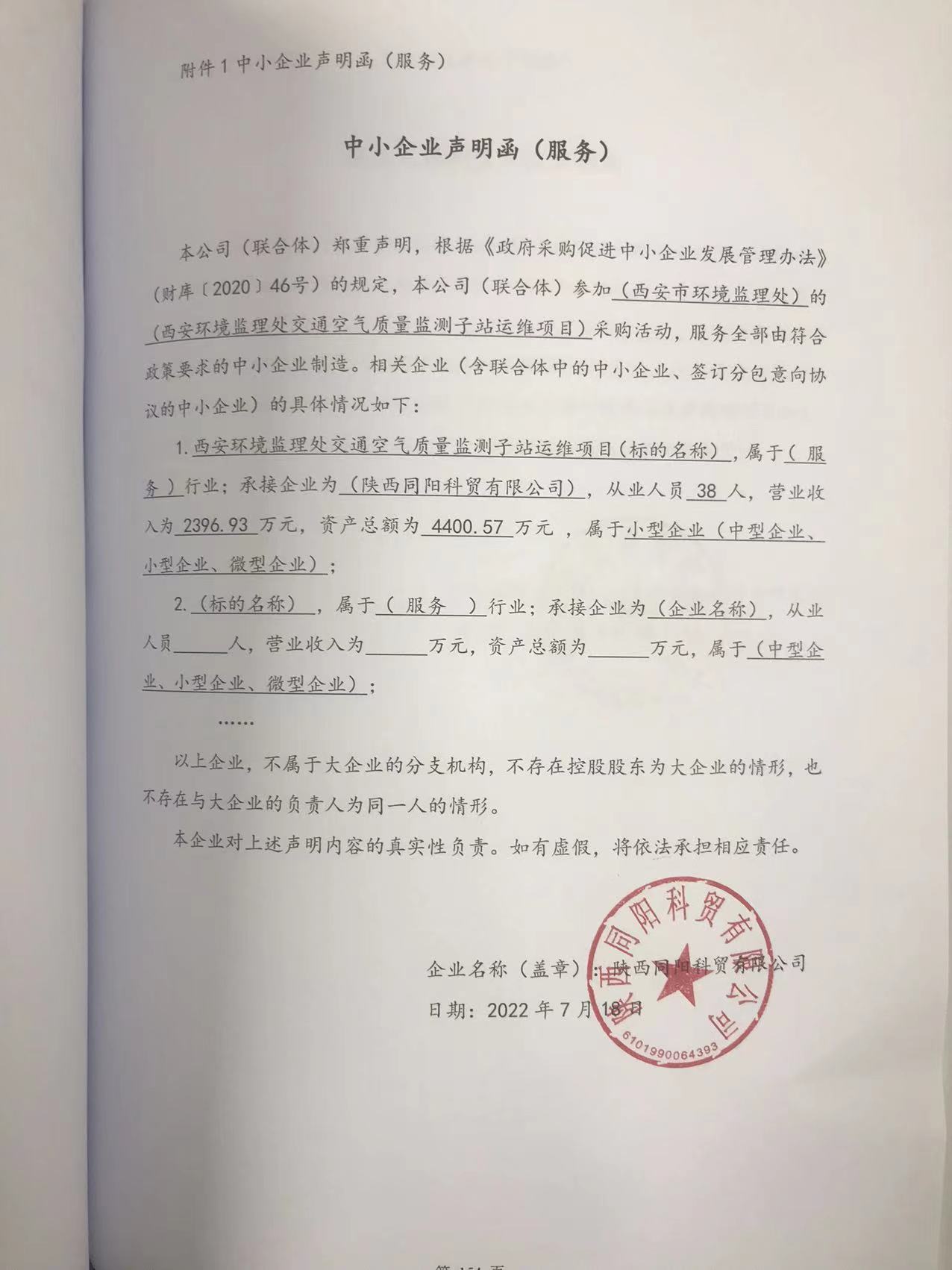 自本公告发布之日起1个工作日。 八、其他补充事宜/ 九、凡对本次公告内容提出询问,请按以下方式联系。 1.采购人信息名称:西安市环境监理处 地址:陕西省西安市碑林区大学东路4号 联系方式:029-81585380 2.采购代理机构信息名称:陕西纵横项目管理有限公司 地址:西安市经开区凤城五路赛高街区A座902室 联系方式:029-86252018 3.项目联系方式项目联系人:李工 电话:029-86252018 陕西纵横项目管理有限公司 2022年07月20日 相关附件: 西安市环境监理处西安环境监理处交通空气质量监测子站运维项目中标(成交)明细.pdf 竞争性磋商文件-西安环境监理处交通空气质量监测子站运维项目(定).pdf 中小企业声明函.jpg 二次报价表.jpg 十一、其他事项: ------------------------------------招标信息结束---------------------------- 标签: 项目 交通 西安 中标 空气 环境 质量监测 上一篇: 2022年7月20日剑阁县中医医院2022年第一批医疗设备(手术室、妇产科升级改造设备)采购项目(二次)中标(成交)结果公告 最新5000条招标信息列表: 滚动招标 |