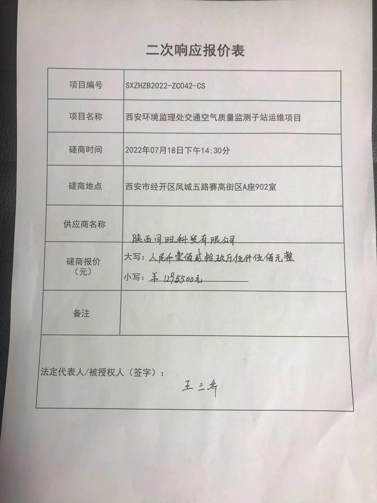 ----------------------------------招标机构发布信息原文:----------------------- <meta http-equiv="content-type" content="text/html;charset=utf-8"> 一、项目编号:SXZHZB2022-ZC042-CS 二、项目名称:西安环境监理处交通空气质量监测子站运维项目 三、采购结果 合同包1(西安环境监理处交通空气质量监测子站运维项目):
