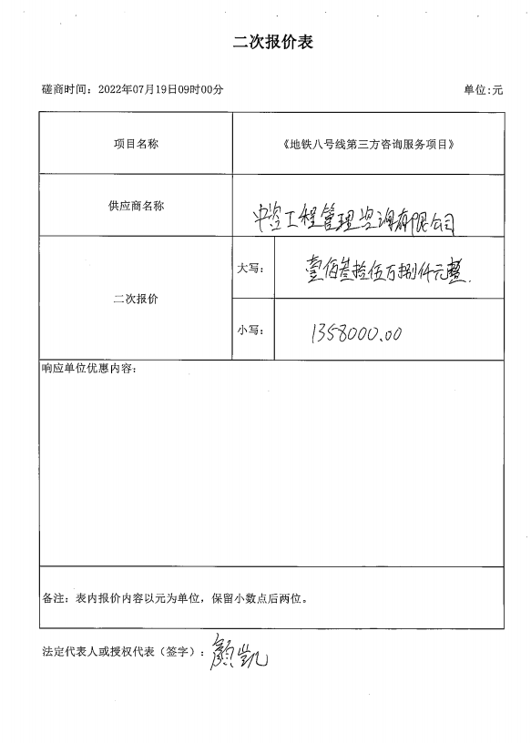 合同包1(地铁八号线第三方咨询服务项目): 服务类(中咨工程管理咨询有限公司)