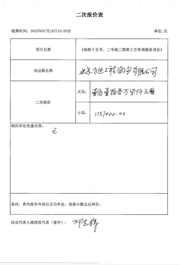 合同包1(地铁十五号、二号线二期第三方咨询服务项目): 服务类(北京方达工程咨询有限公司)