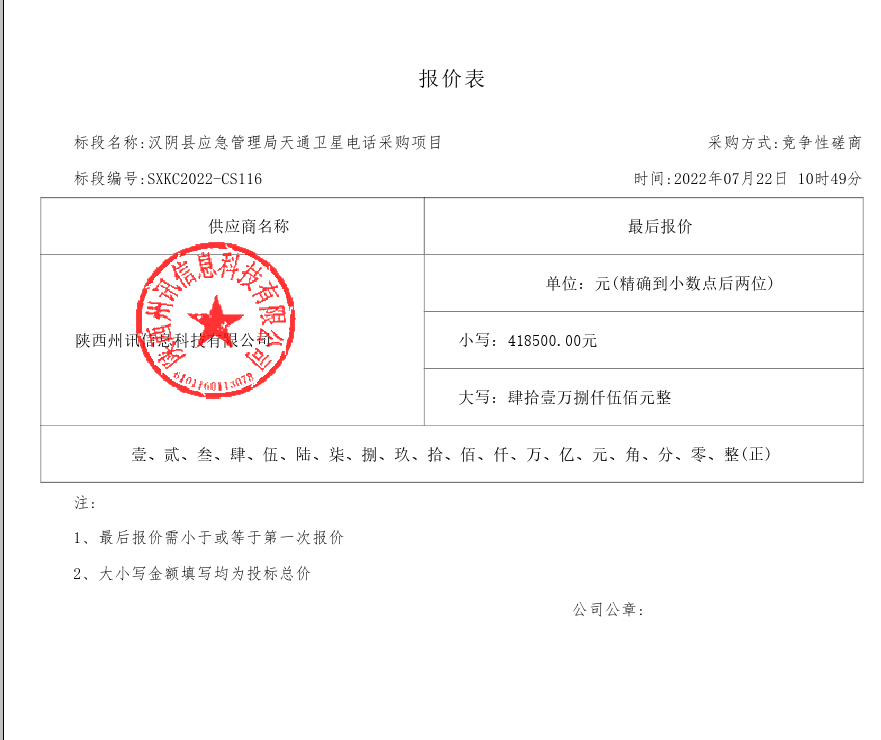 2022年7月25日汉阴县应急管理局天通卫星电话采购项目中标(成交)结果公告 |