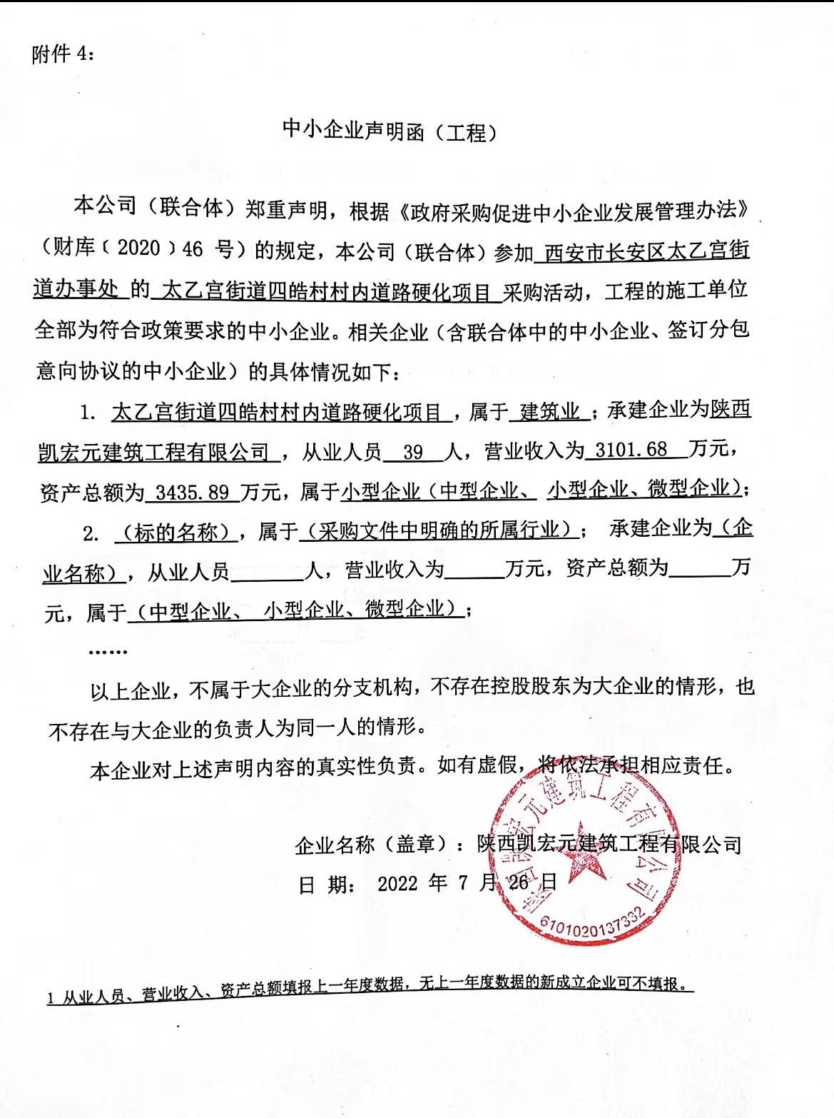 合同包1(太乙宫街道四皓村村内道路硬化项目): 工程类(陕西凯宏元建筑工程有限公司)