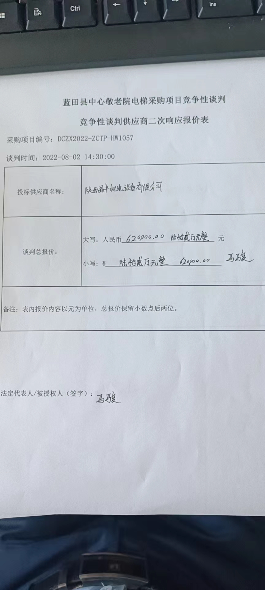 ----------------------------------招标机构发布信息原文:----------------------- <meta http-equiv="content-type" content="text/html;charset=utf-8"> 一、项目编号:DCZX2022-ZCTP-HW1057 二、项目名称:蓝田县中心敬老院电梯采购项目 三、采购结果 合同包1(蓝田县中心敬老院电梯采购项目):