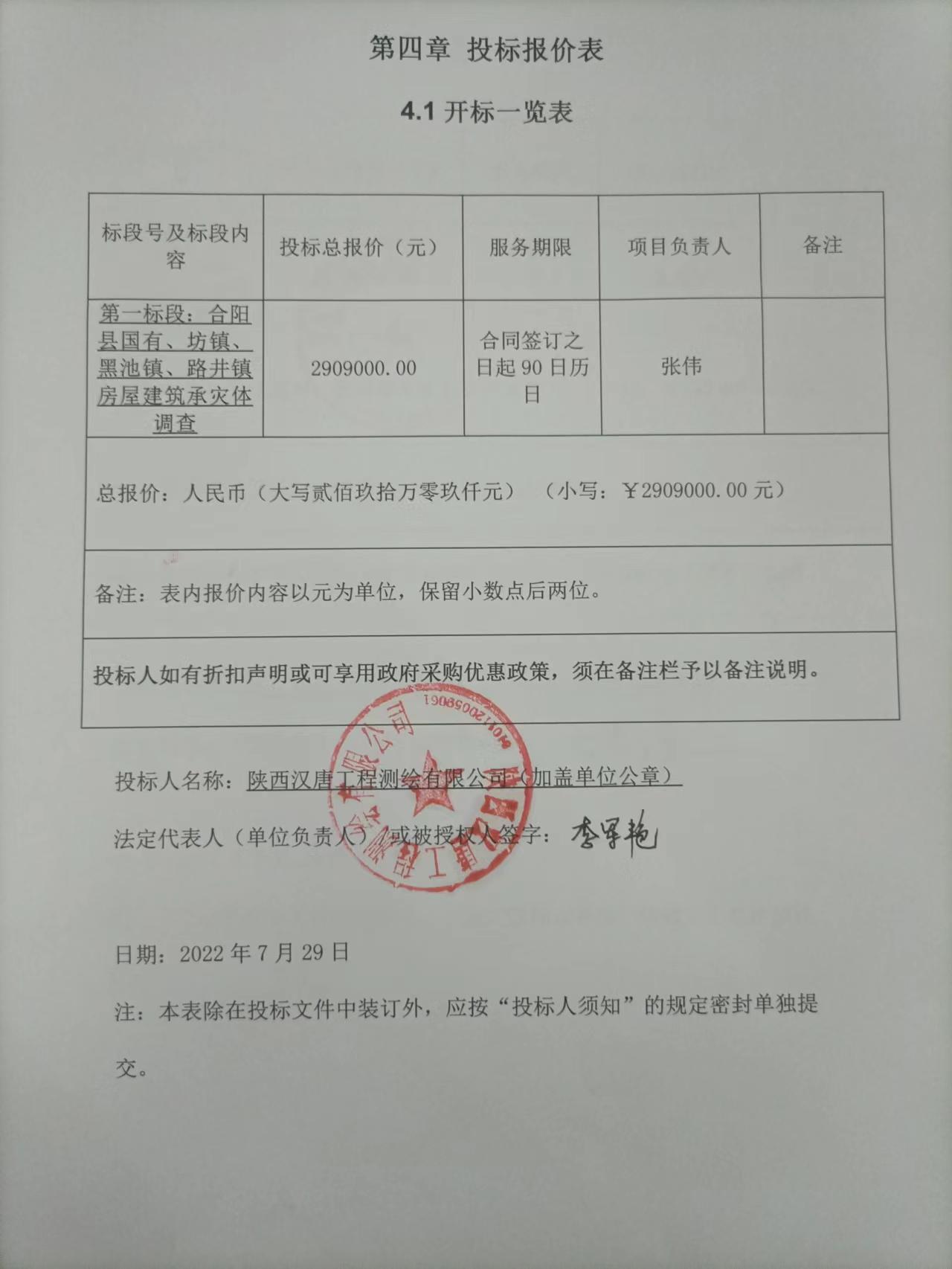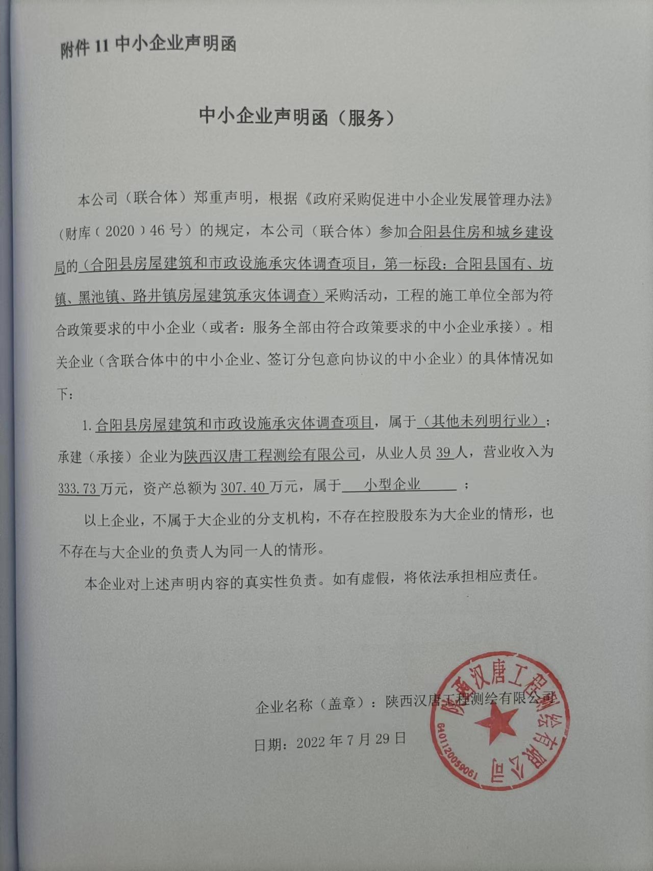 合同包1(合阳县国有、坊镇、黑池镇、路井镇房屋建筑承灾体调查): 服务类(陕西汉唐工程测绘有限公司)