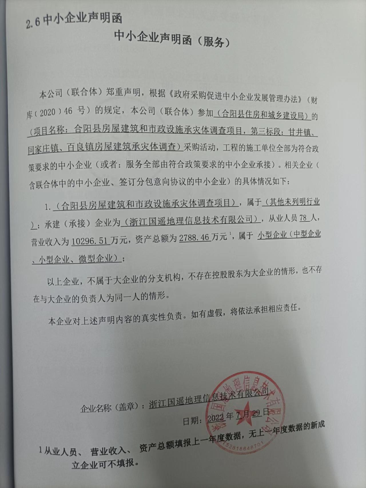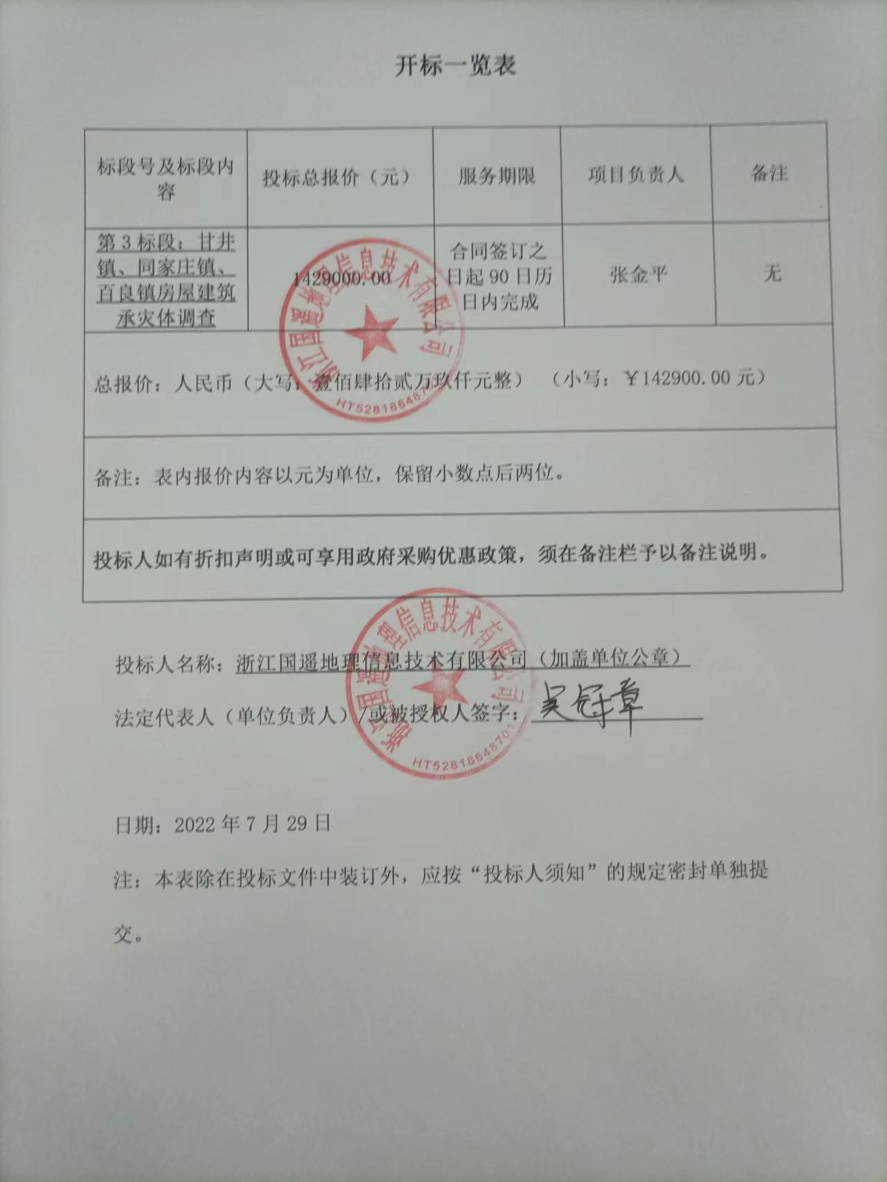 合同包3(甘井镇、同家庄镇、百良镇房屋建筑承灾体调查): 服务类(浙江国遥地理信息技术有限公司)