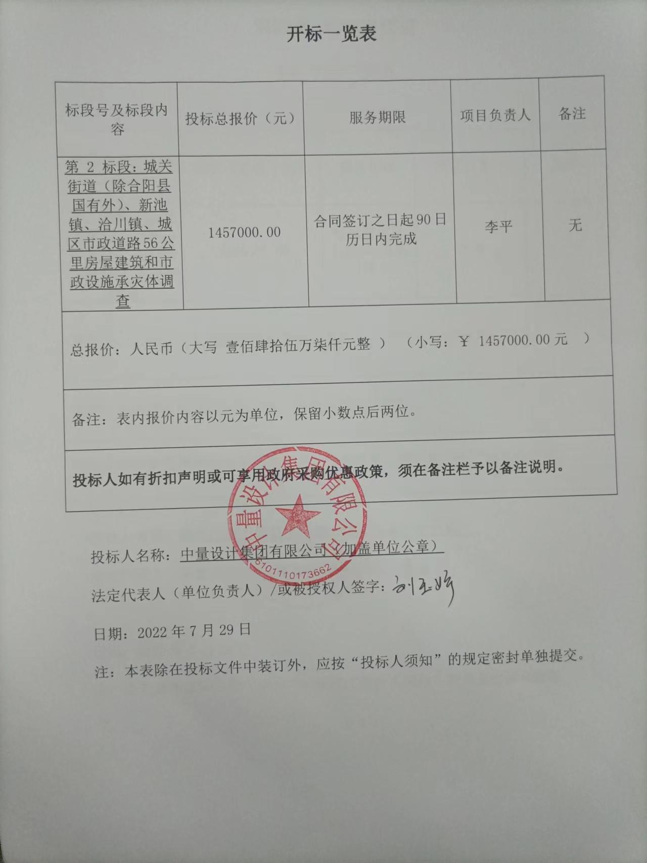 合同包2(城关街道(除合阳县国有外)、新池镇、洽川镇、城区市政道路56公里房屋建筑和市政设施承灾体调查): 服务类(中量设计集团有限公司)