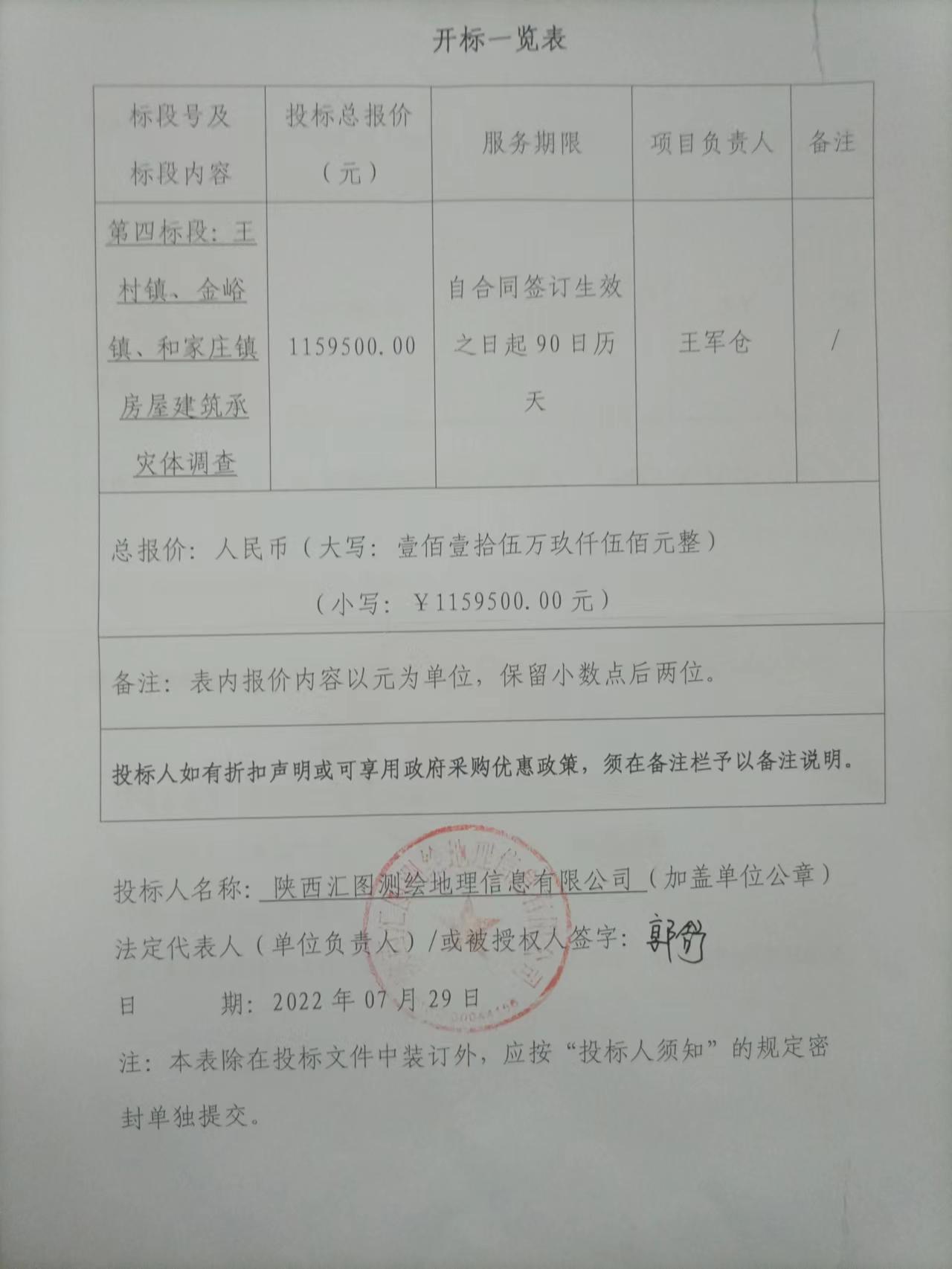 合同包4(王村镇、金峪镇、和家庄镇房屋建筑承灾体调查): 服务类(陕西汇图测绘地理信息有限公司)