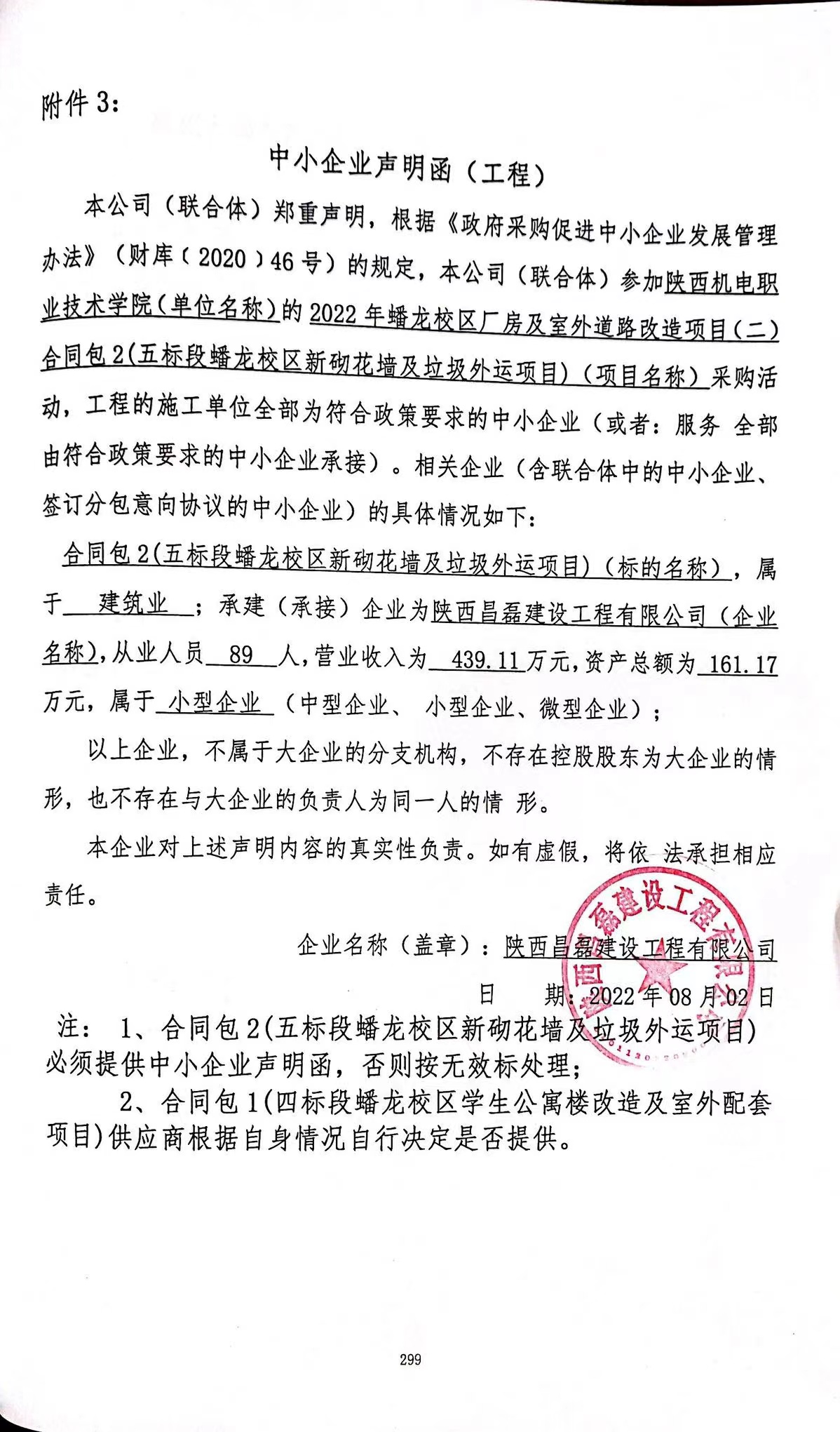 合同包2(五标段蟠龙校区新砌花墙及垃圾外运项目): 工程类(陕西昌磊建设工程有限公司)