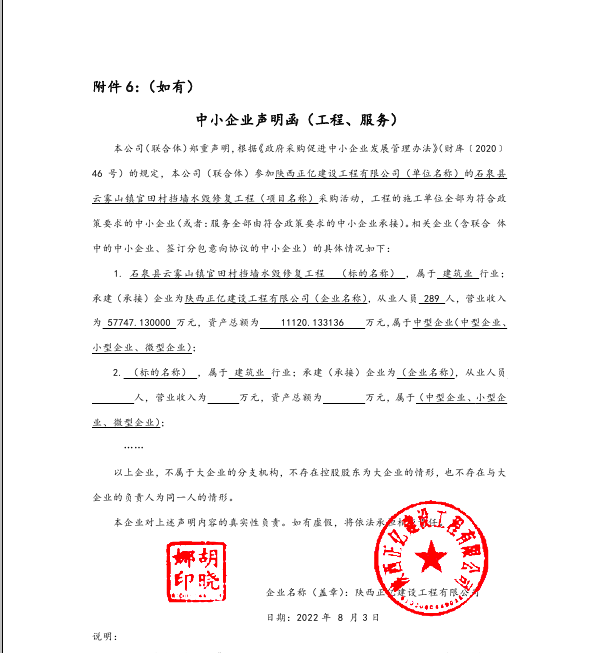 自本公告发布之日起1个工作日。 八、其他补充事宜/ 九、凡对本次公告内容提出询问,请按以下方式联系。 1.采购人信息名称:石泉县自然资源局 地址:石泉县城关镇春潮广场创投中心四楼 联系方式:0915-6318058 2.采购代理机构信息名称:陕西正翼招标代理有限公司 地址:西安经济技术开发区凤城一路6号利君V时代B座9F 联系方式:029-86210100转806 3.项目联系方式项目联系人:刘媚、杨慧 电话:029-86210100转806 陕西正翼招标代理有限公司 2022年08月04日 相关附件: 石泉县自然资源局石泉县云雾山镇官田村挡墙水毁修复工程中标(成交)明细.pdf GK1107 石泉县云雾山镇官田村挡墙水毁修复工程-定稿.doc 中标单位中小企业声明函.png 十一、其他事项: ------------------------------------招标信息结束---------------------------- 标签: 中标 工程 石泉县 官田 挡墙 云雾 山镇 上一篇: 2022年8月4日张家口机械工业学校数字化办公设备采购公开招标中标公告 最新5000条招标信息列表: 滚动招标 |