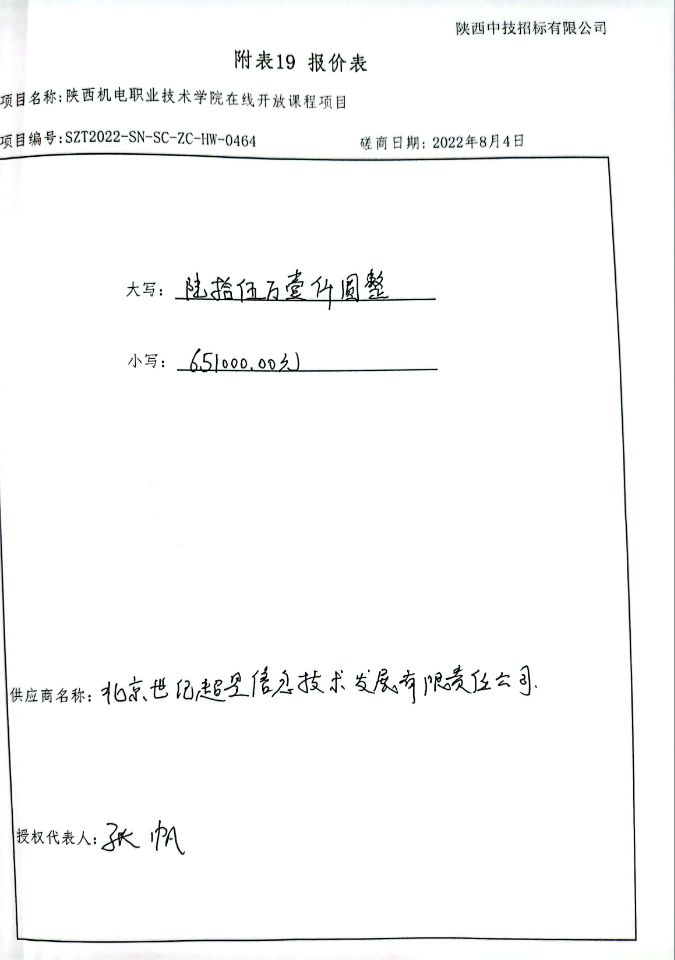2022年8月5日陕西机电职业技术学院在线开放课程项目中标(成交)结果公告 |