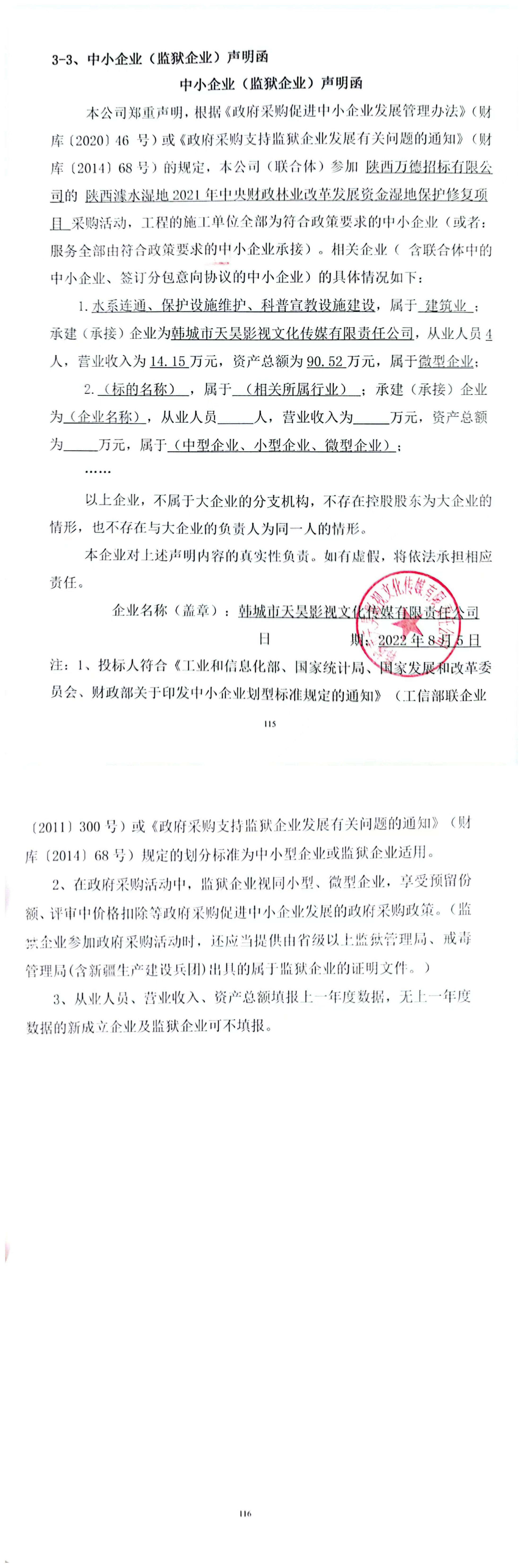 合同包2(水系连通、保护设施维护、科普宣教设施建设): 服务类(韩城市天昊影视文化传媒有限责任公司)