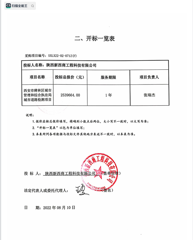 2022年8月11日西安市碑林区城市管理和综合执法局城市道路检测项目中标(成交)结果公告 |