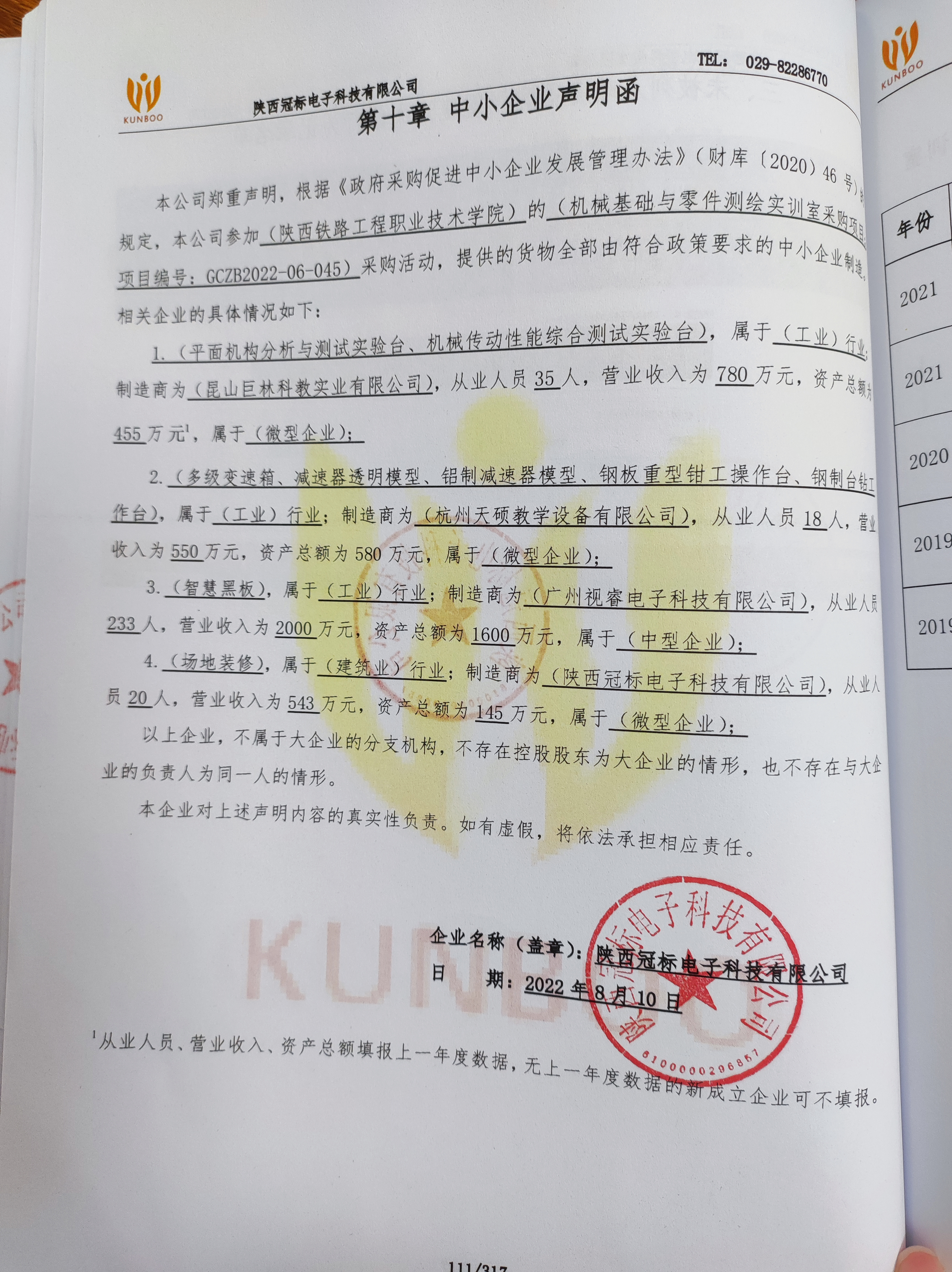 自本公告发布之日起1个工作日。 八、其他补充事宜/ 九、凡对本次公告内容提出询问,请按以下方式联系。 1.采购人信息名称:陕西铁路工程职业技术学院 地址:陕西省渭南市站北街东段一号 联系方式:0913-2221395 2.采购代理机构信息名称:陕西国创招标有限公司 地址:西安市高新区高新一路5号正信大厦A座24楼 联系方式:029-88899363 3.项目联系方式项目联系人:王璐 任亚明 电话:029-88899363 陕西国创招标有限公司 2022年08月11日 相关附件: 陕西铁路工程职业技术学院机械基础与零件测绘实训室采购项目中标(成交)明细.pdf 7.25变更定稿--公开线上--陕西铁路工程职业技术学院机械基础与零件测绘实训室采购项目.doc 分项报价表.docx 中小企业声明函.jpg 十一、其他事项: ------------------------------------招标信息结束---------------------------- 标签: 项目 采购 陕西 中标 职业技术学院 零件 铁路工程 上一篇: 2022年8月11日成武县土地征收成片开发方案编制项目中标(成交)公告 最新5000条招标信息列表: 滚动招标 |