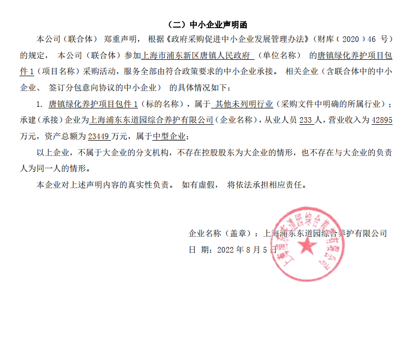 2022年8月12日唐镇绿化养护项目的中标(成交)结果公告 |
