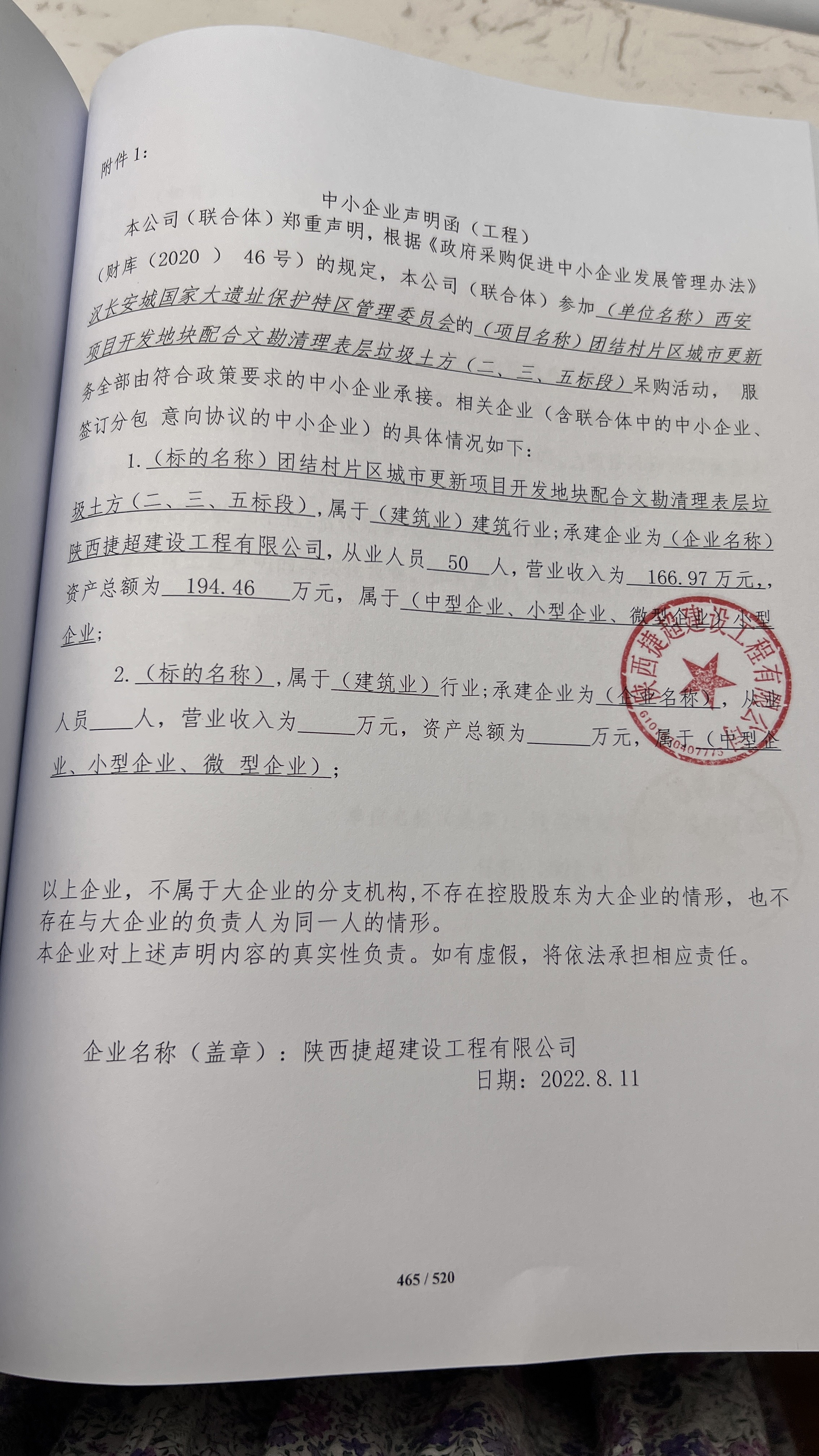 合同包2(三标段团结村片区城市更新项目开发地块配合文勘清理表层垃圾土方-凤城九路规划路以北,御景城以东,红旗东路以南,北辰大道以西的外运): 工程类(陕西捷超建设工程有限公司)