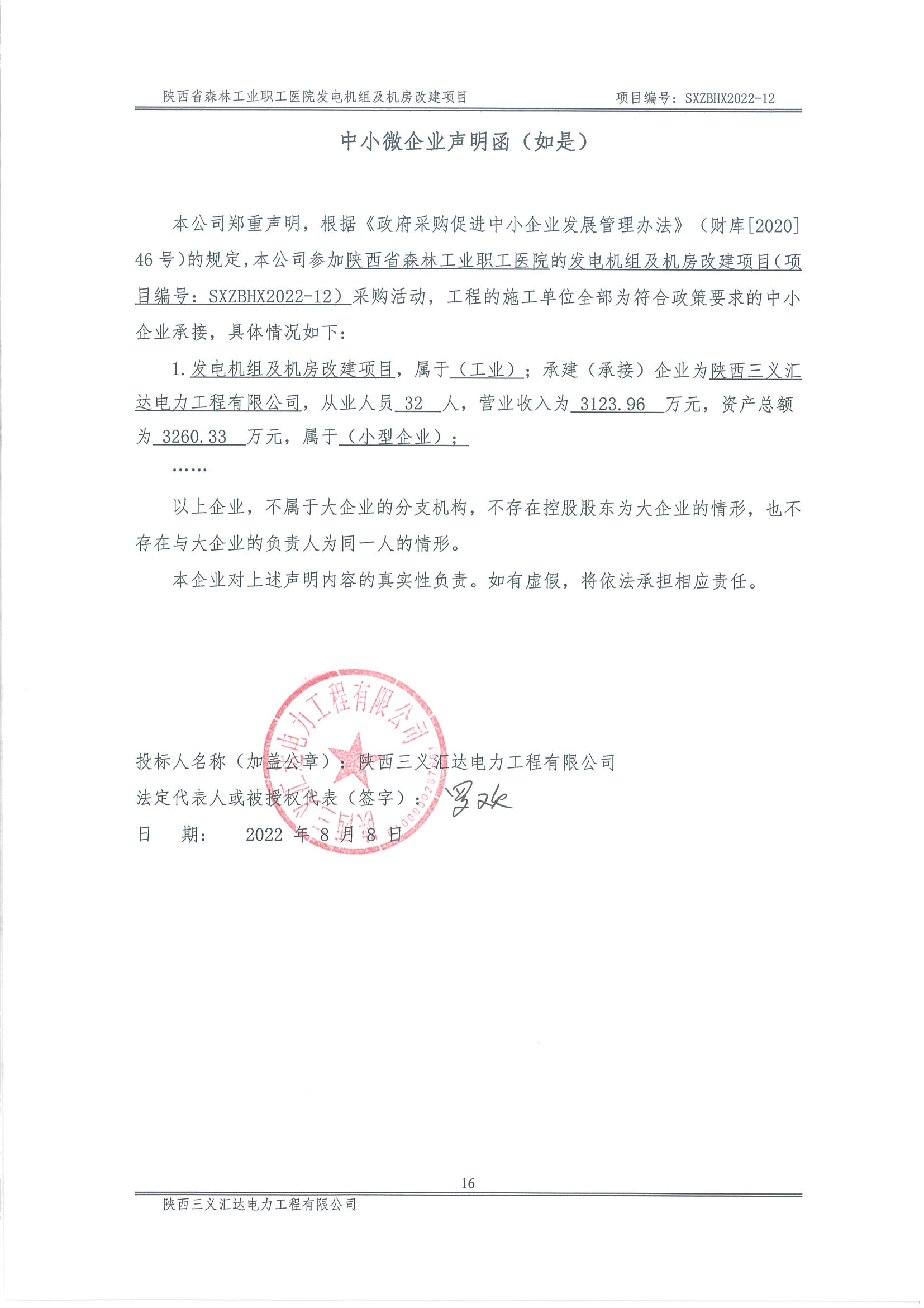 合同包1(发电机组及机房改建): 工程类(陕西三义汇达电力工程有限公司)