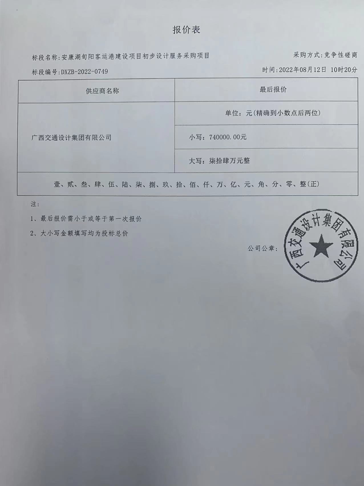 合同包1(安康湖旬阳客运港建设项目初步设计服务采购项目): 服务类(广西交通设计集团有限公司)