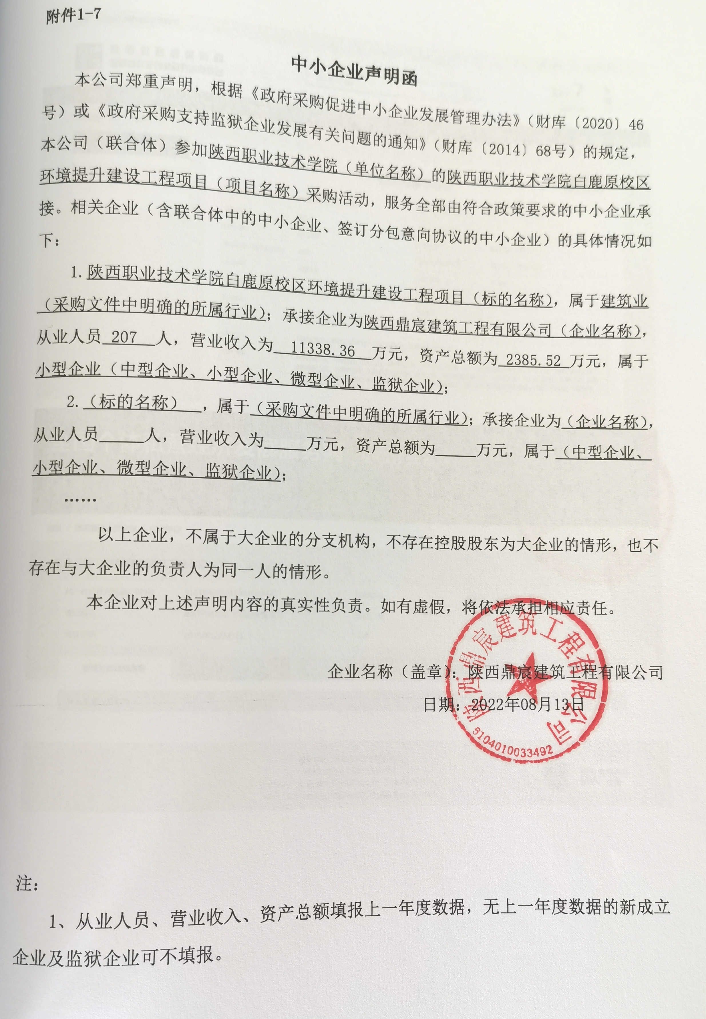 自本公告发布之日起1个工作日。 八、其他补充事宜/ 九、凡对本次公告内容提出询问,请按以下方式联系。 1.采购人信息名称:陕西职业技术学院 地址:西安市灞桥区狄寨路2028号 联系方式:029-83618571 2.采购代理机构信息名称:四川国际招标有限责任公司 地址:西安市高新区唐延路35号旺座现代城G座2301室 联系方式:029-88854273 3.项目联系方式项目联系人:谭逸哲、张祎多 电话:029-88854273-8012 四川国际招标有限责任公司 2022年08月15日 相关附件: 陕西职业技术学院白鹿原校区环境提升建设工程项目中标(成交)明细.pdf 报价函.pdf 中小企业声明函.jpg 070003陕西职业技术学院白鹿原校区环境提升建设工程项目.docx 报价函.pdf 十一、其他事项: ------------------------------------招标信息结束---------------------------- 标签: 中标 陕西 职业技术学院 校区 建设工程项目 环境 公告 上一篇: 2022年8月15日宝鸡市金台区应急管理局金台区第一次全国自然灾害综合风险普查相关服务项目(二次)中标(成交)结果公告 最新5000条招标信息列表: 滚动招标 |