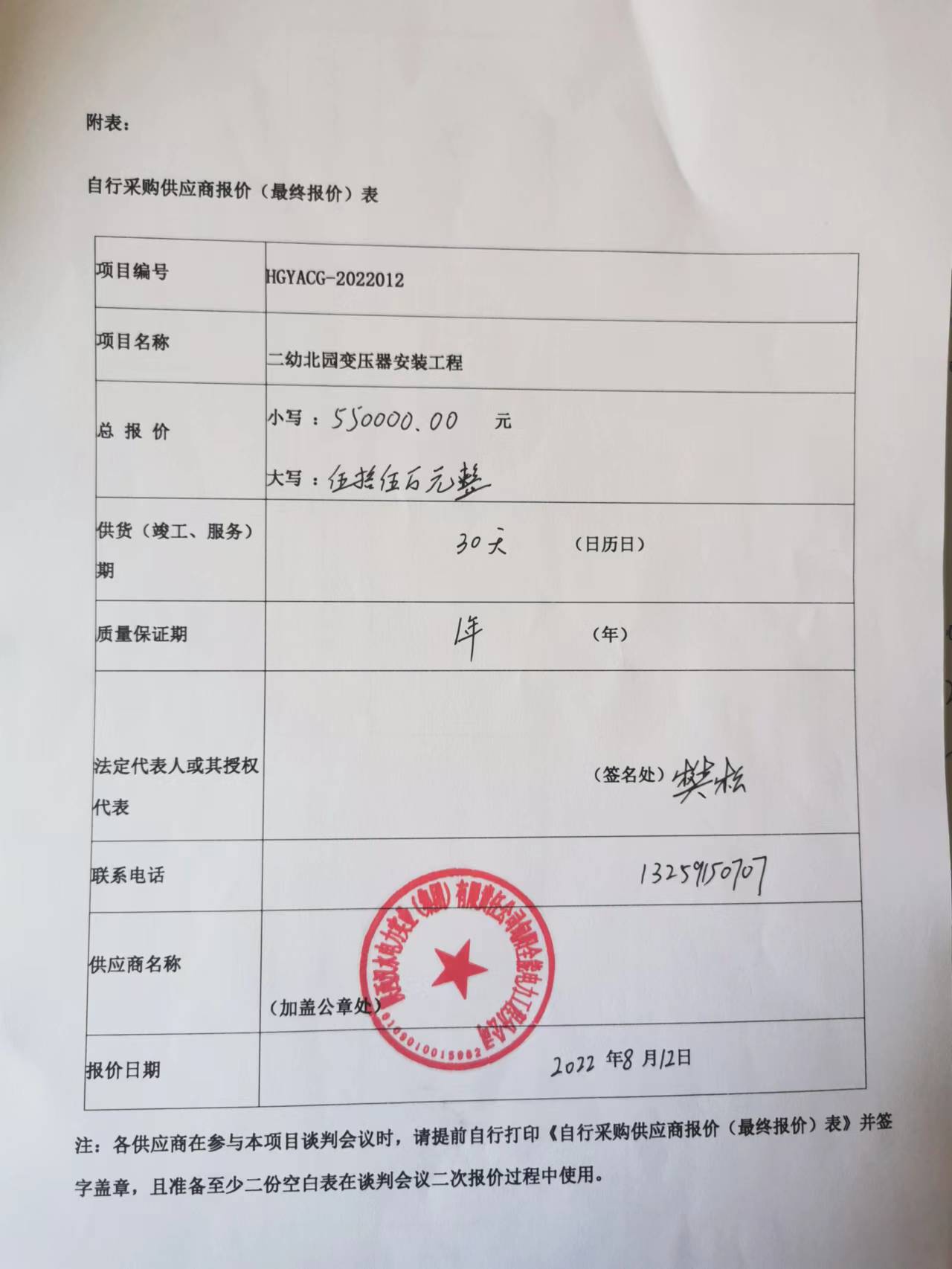 2022年8月15日二幼北园变压器安装工程中标(成交)结果公告 |
