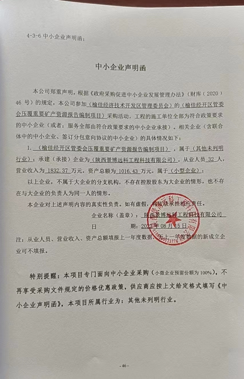 合同包1(榆佳经开区管委会压覆重要矿产资源报告编制项目): 服务类(陕西景博远科工程科技有限公司)