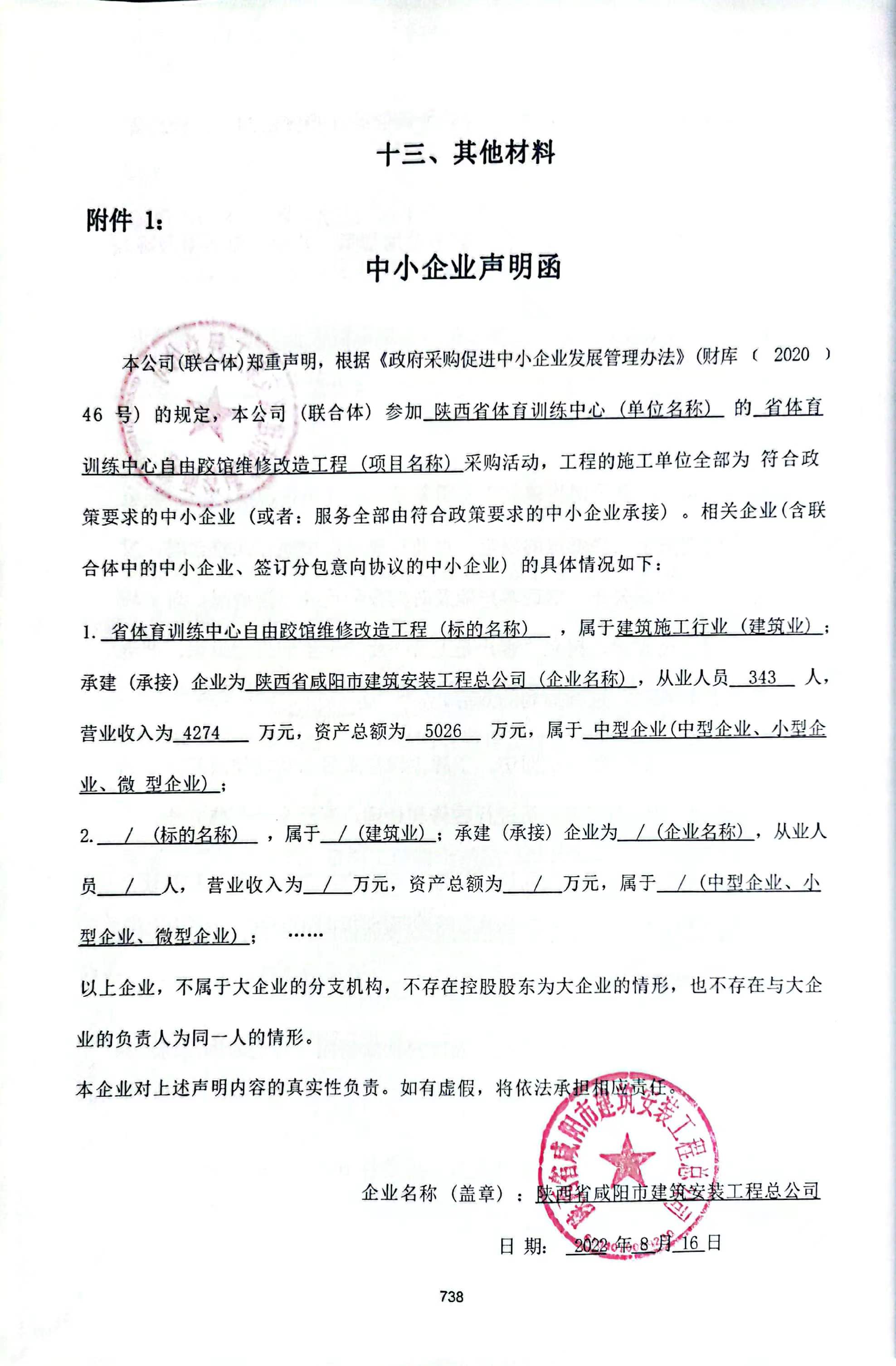 自本公告发布之日起1个工作日。 八、其他补充事宜陕西省咸阳市建筑安装工程总公司项目经理杨蓬勃职业证书信息:陕261111231089 九、凡对本次公告内容提出询问,请按以下方式联系。 1.采购人信息名称:陕西省体育训练中心 地址:陕西省西安市雁塔区丈八东路303号 联系方式:029-88587245 2.采购代理机构信息名称:华春建设工程项目管理有限责任公司 地址:西安市南二环与朱雀路十字华融国际A座22楼E区招标部 联系方式:029-63021289 3.项目联系方式项目联系人:赵根女 电话:029-63021289 华春建设工程项目管理有限责任公司 2022年08月18日 相关附件: (定稿)省体育训练中心自由跤馆维修改造工程招标文件.doc 中小企业声明函.jpg 十一、其他事项: ------------------------------------招标信息结束---------------------------- 标签: 中标 体育 中心 改造工程 自由 公告 上一篇: 2022年8月18日清河县人民医院急诊急救能力提升项目中标公告 最新5000条招标信息列表: 滚动招标 |