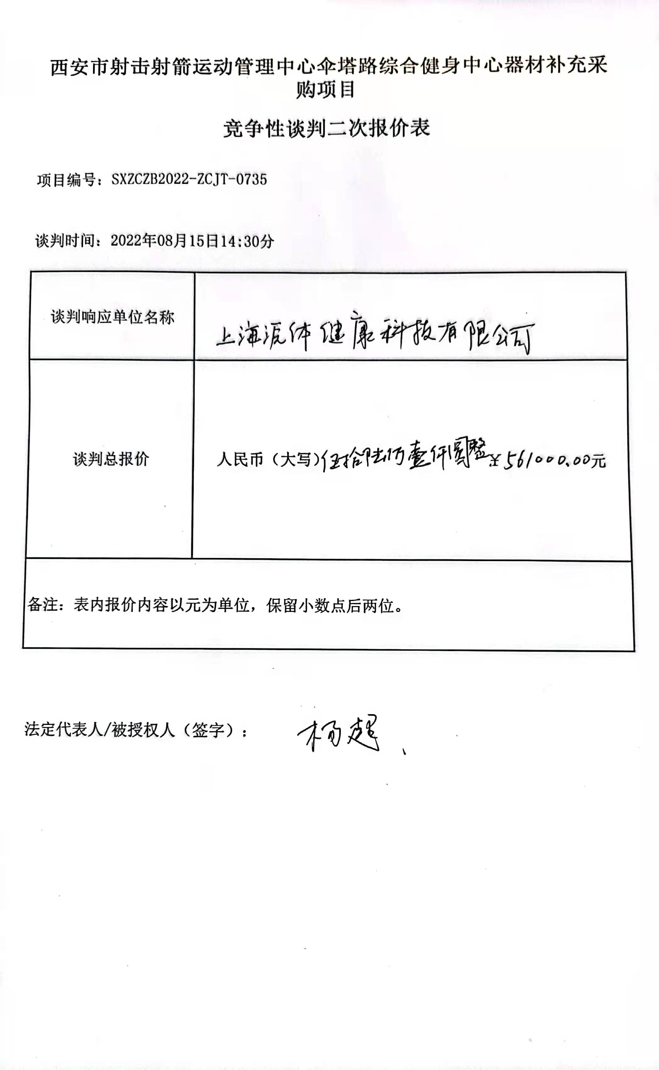 自本公告发布之日起1个工作日。 八、其他补充事宜/ 九、凡对本次公告内容提出询问,请按以下方式联系。 1.采购人信息名称:西安市射击射箭运动管理中心 地址:伞塔路69号西安市射击射箭运动管理中心 联系方式:029-83282189 2.采购代理机构信息名称:陕西至诚招标咨询有限公司 地址:陕西省西安市未央区未央路171-1 银池广场道拉斯财富中心21楼03室 联系方式:029-88219779 3.项目联系方式项目联系人:王越 电话:029-88219779 陕西至诚招标咨询有限公司 2022年08月19日 相关附件: 西安市射击射箭运动管理中心伞塔路综合健身中心器材补充采购项目中标(成交)明细.pdf 定稿---西安市射击射箭运动管理中心伞塔路综合健身中心器材采购项目.pdf 谈判报价表.jpg 十一、其他事项: ------------------------------------招标信息结束---------------------------- 标签: 项目 中标 采购 西安市 管理中心 健身中心 器材 上一篇: 2022年8月19日邯郸市住房公积金管理中心信息化建设项目C包、F包(二次)C包公开招标中标公告 最新5000条招标信息列表: 滚动招标 |