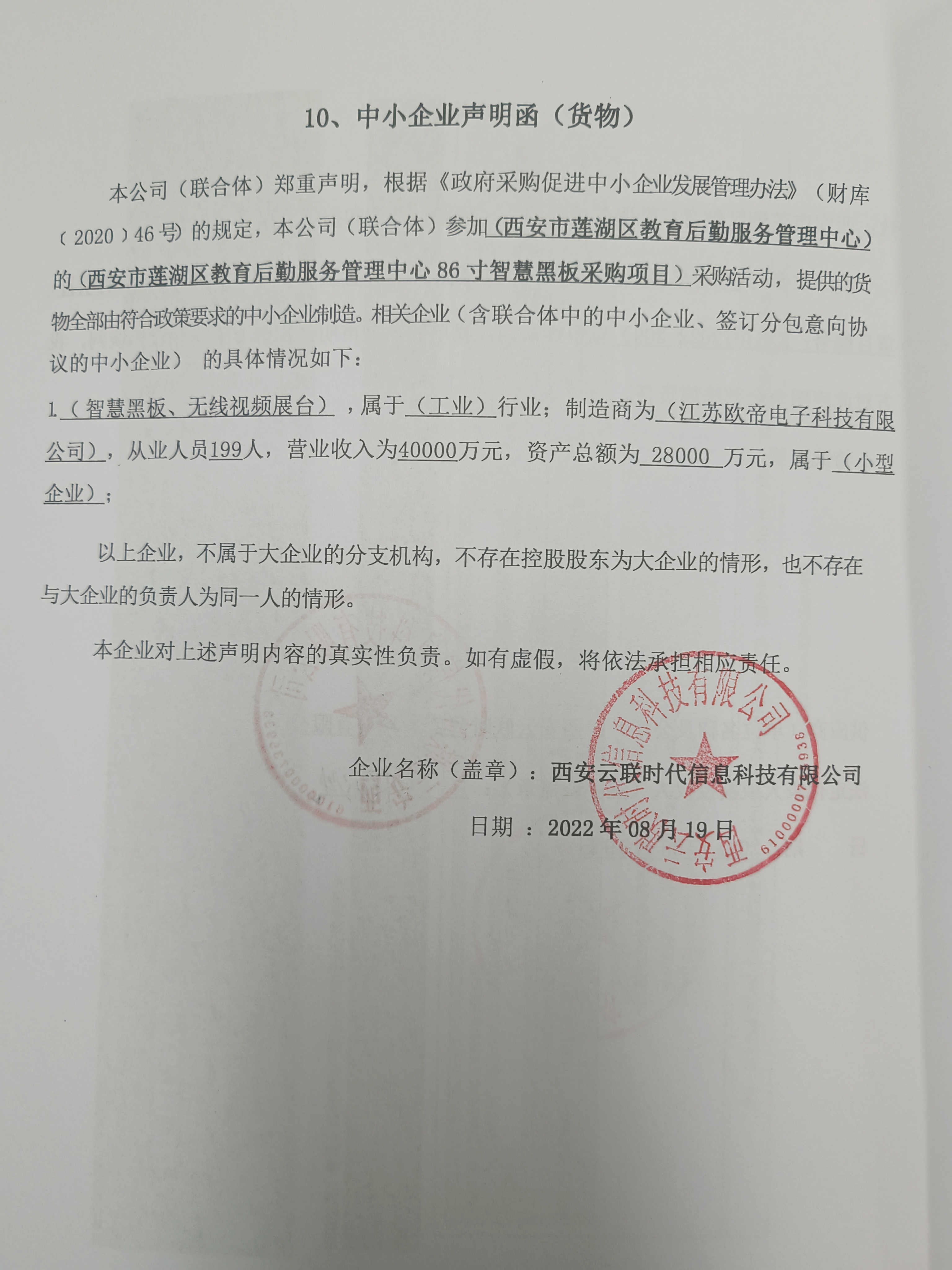 2022年8月21日西安市莲湖区教育后勤服务管理中心86寸智慧黑板采购项目中标(成交)结果公告 |
