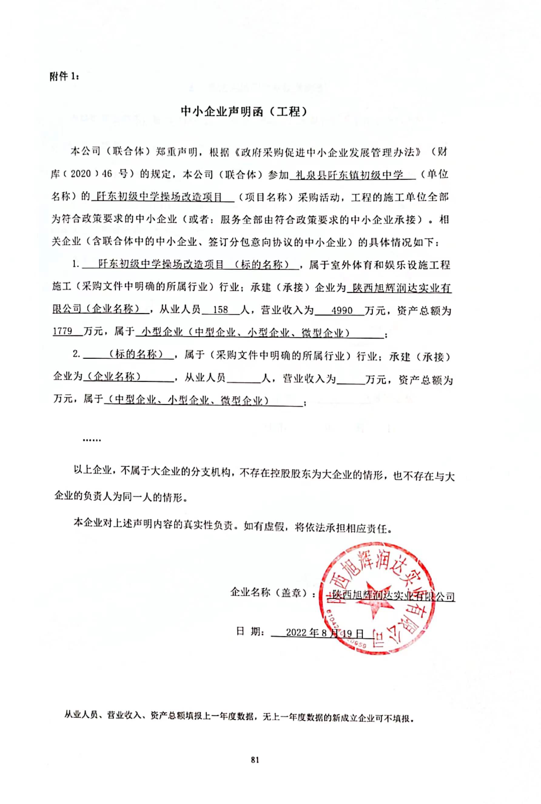 自本公告发布之日起1个工作日。 八、其他补充事宜/ 九、凡对本次公告内容提出询问,请按以下方式联系。 1.采购人信息名称:礼泉县阡东镇初级中学 地址:礼泉县阡东镇街道南500米 联系方式:13201907188 2.采购代理机构信息名称:西北国际(陕西)造价管理集团有限公司 地址:陕西省西安市碑林区陕西省西安市碑林区长安国际中心F座办公楼19楼05单元 联系方式:029-85221302 3.项目联系方式项目联系人:张工 电话:17792642151 西北国际(陕西)造价管理集团有限公司 2022年08月22日 相关附件: 礼泉县阡东镇初级中学阡东初级中学操场改造项目中标(成交)明细.pdf 礼泉县阡东镇初级中学操场改造项目 磋商文件.pdf 中小企业声明函.jpg 十一、其他事项: ------------------------------------招标信息结束---------------------------- 标签: 中标 礼泉县 操场 改造项目 公告 阡东镇 上一篇: 2022年8月22日靖边县河道库坝养护站靖边县“一河(湖)一策”方案编制采购项目成交结果公告 最新5000条招标信息列表: 滚动招标 |